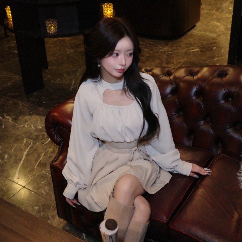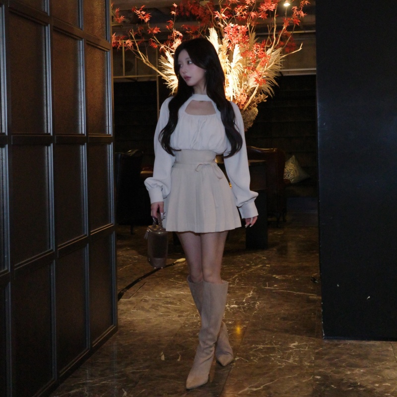 高めの切り替え位置で脚長効果を叶え、着るだけでスタイルアップが可能✨ プリーツスカートが軽やかに揺れ、ガーリーさと上品さを両立した一着です♡🕊️
