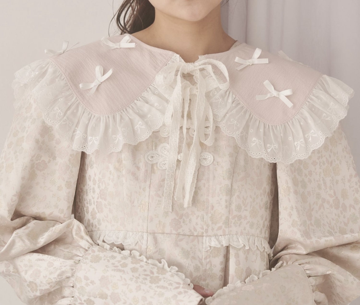 たっぷりのレースを挟み込んで、ちょこんとしたリボンをちりばめたつけ襟〇