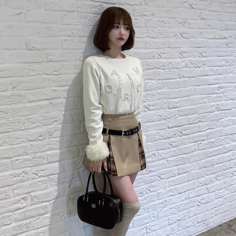 フロントのパールで波打つように繋がるロゴが目を惹き、ひときわ華やかな存在感を放つ一枚🤍✨ 程よいゆとりのシルエットで、体のラインを拾いすぎず、すっきりと着こなせる万能トップスです🕊️💗