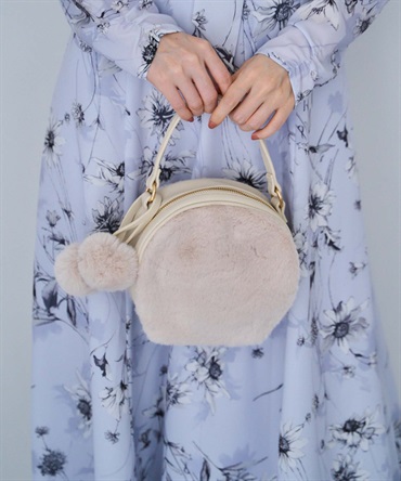 ファーバッグには取り外し可能なポンポンチャームがアクセントに。