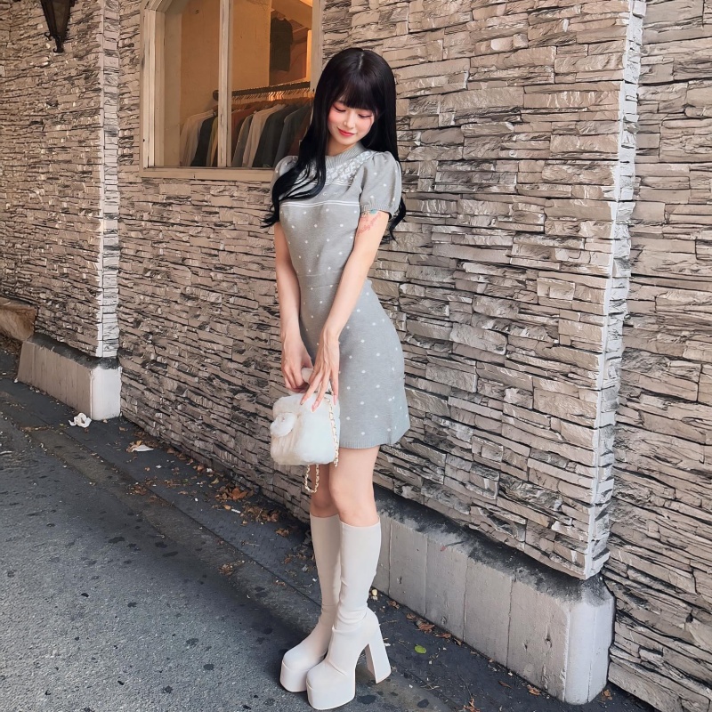 人気のタイトシルエットがスタイルアップを叶え、ふんわりパフスリーブが肩に立体感を与えて腕周りを華奢見せ♡ フロントのさりげないDARICHロゴが、上品な印象をプラスします✨