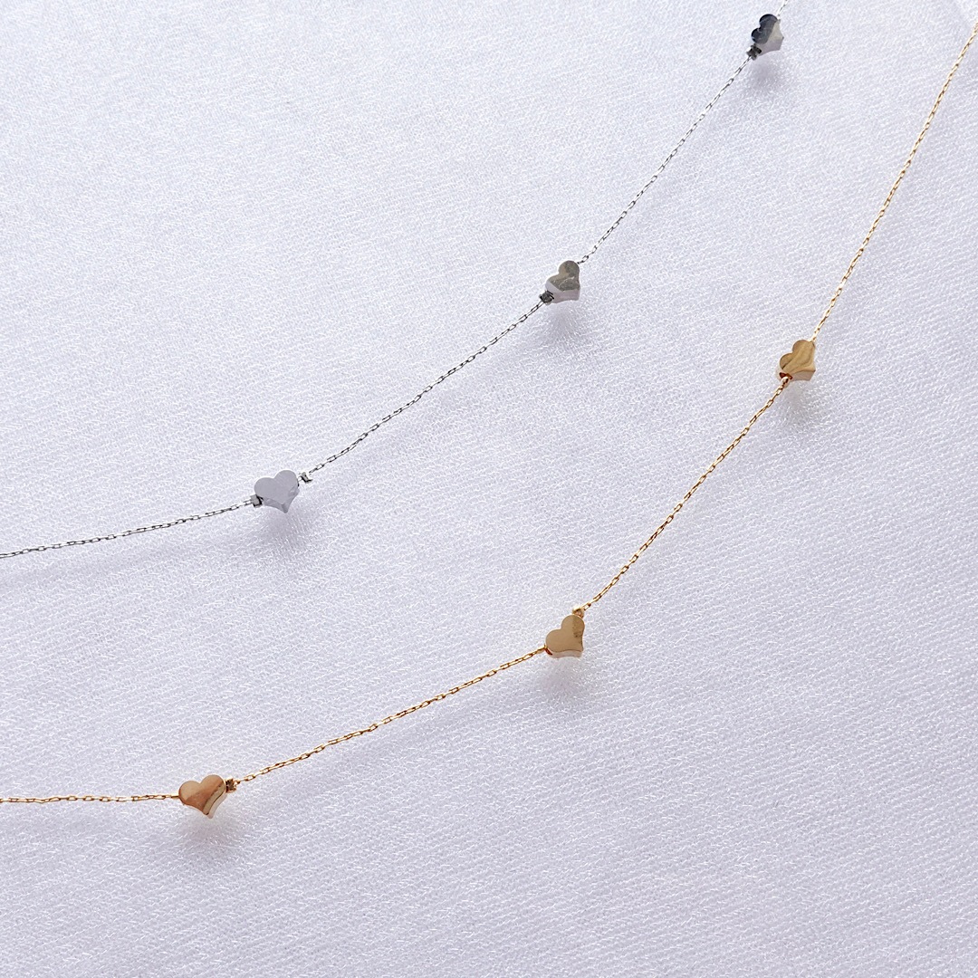 華奢なチェーンに小さなハートを並べたステーションネックレス🤍🩶