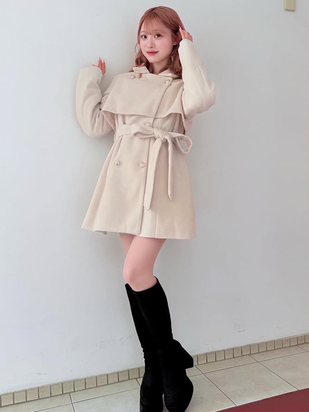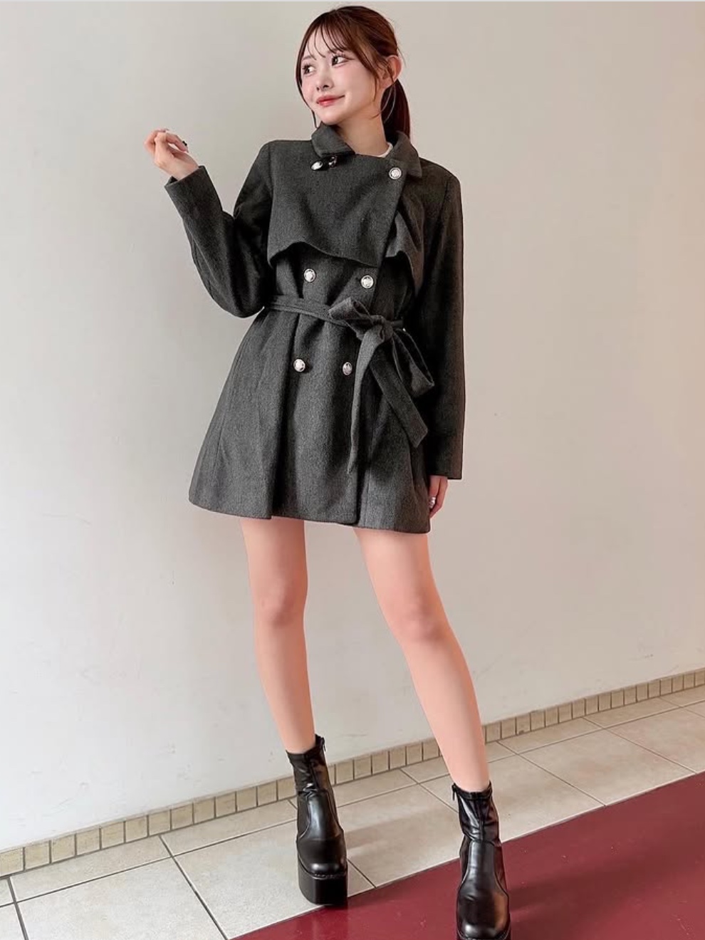 ・ミニ丈ボトムス+ロングブーツを合わせたトレンドスタイルがおすすめ。