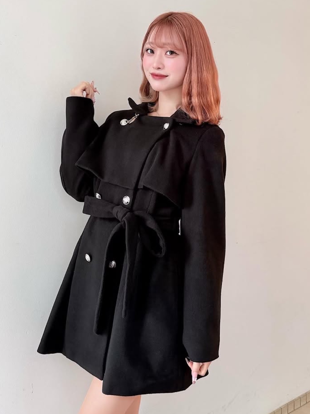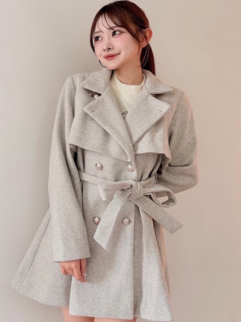 ・ボタンを閉じれば上品なミドルコート風に、開ければテーラードコート風にも着られる2way仕様◎