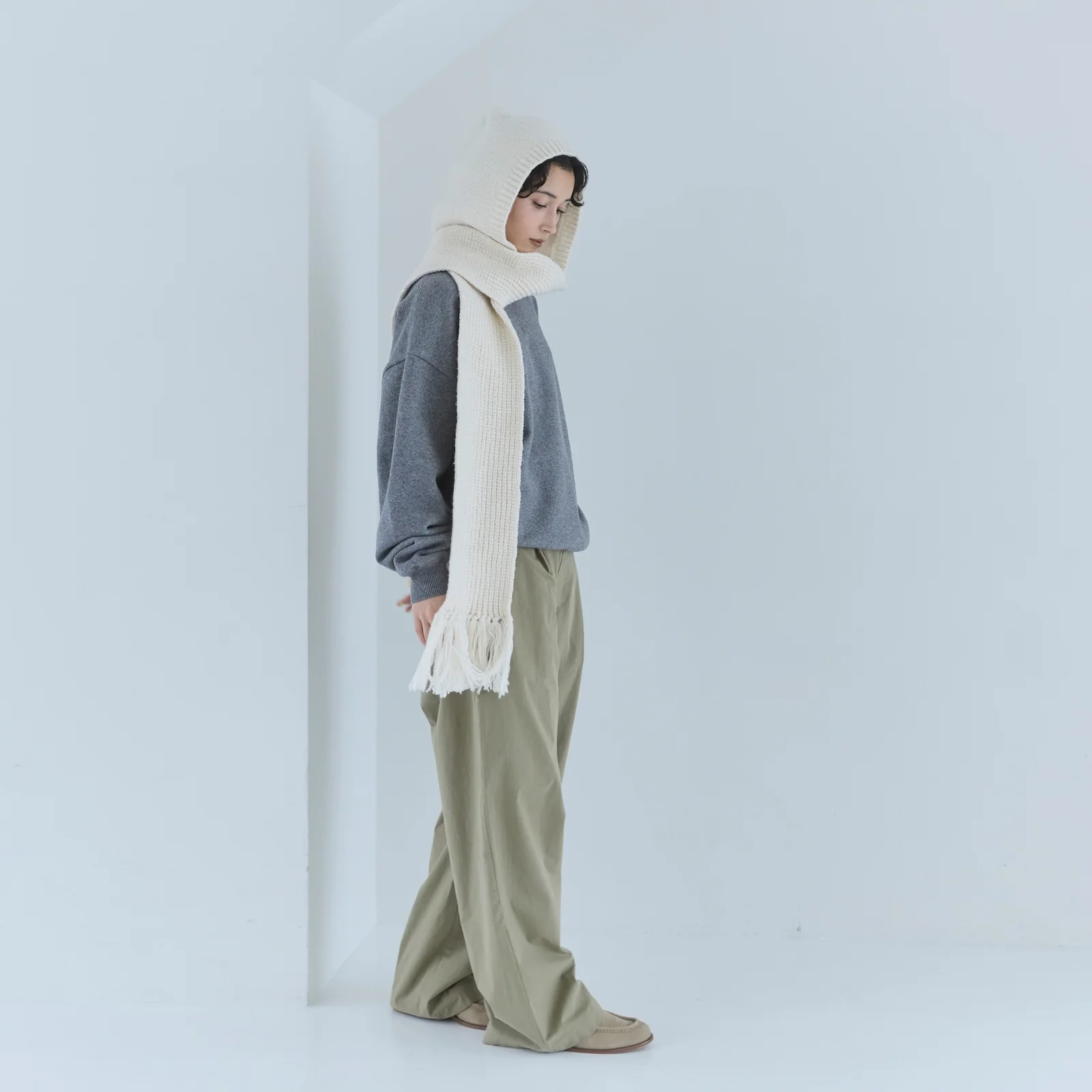 マフラー部分をたっぷり長めに取り、自由にアレンジできる仕様。