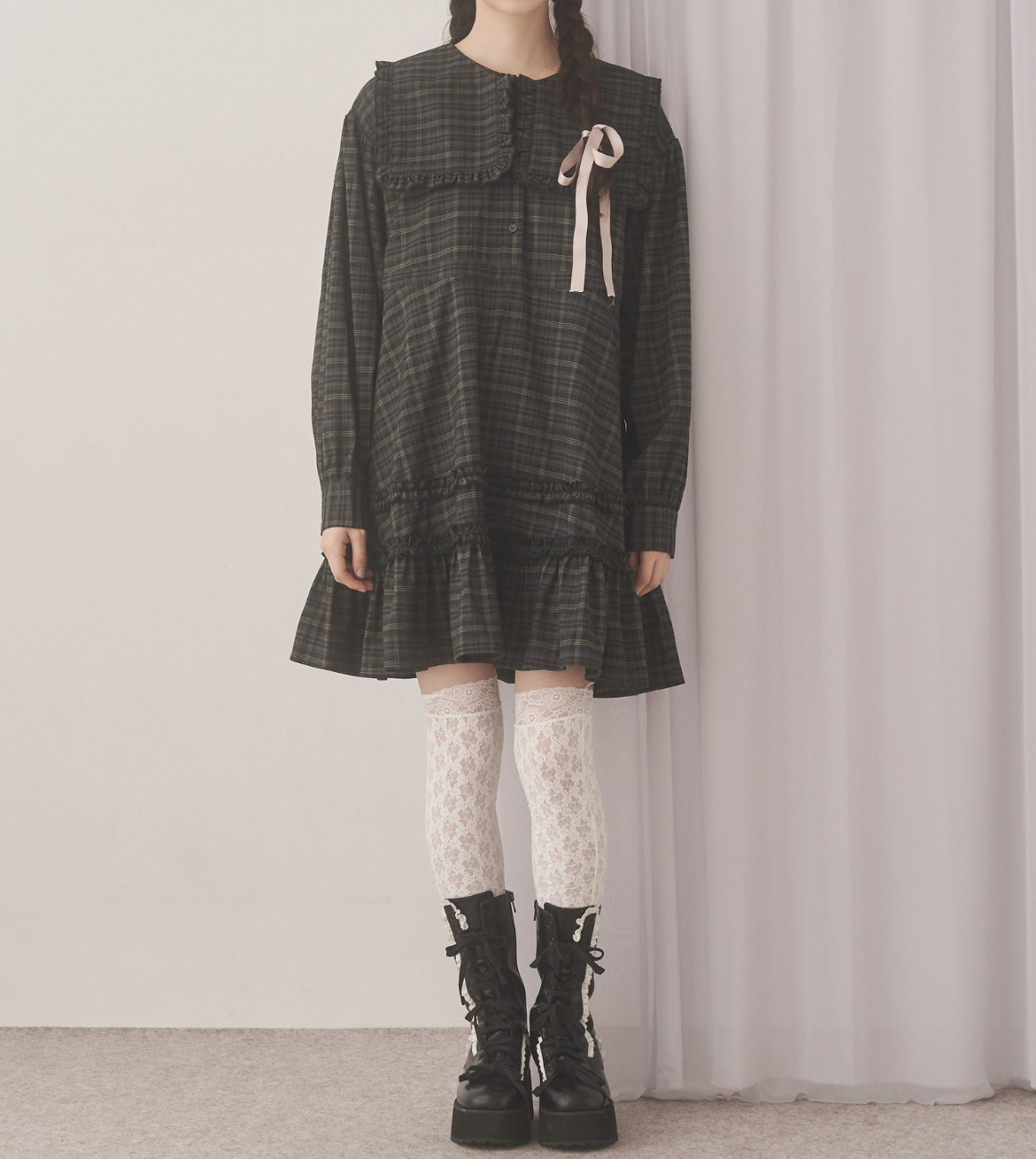 秋冬らしいチェック柄生地を使用したミニワンピ―ス。