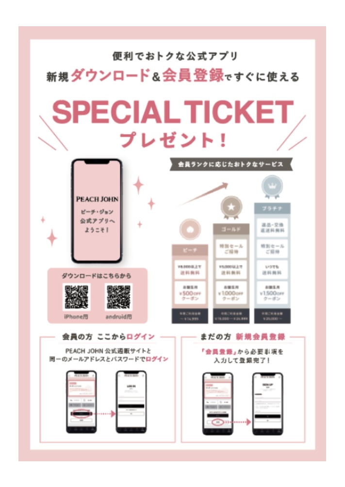 ピーチジョン公式アプリを新規ダウンロード&会員登録でスペシャルチケットプレゼント♪