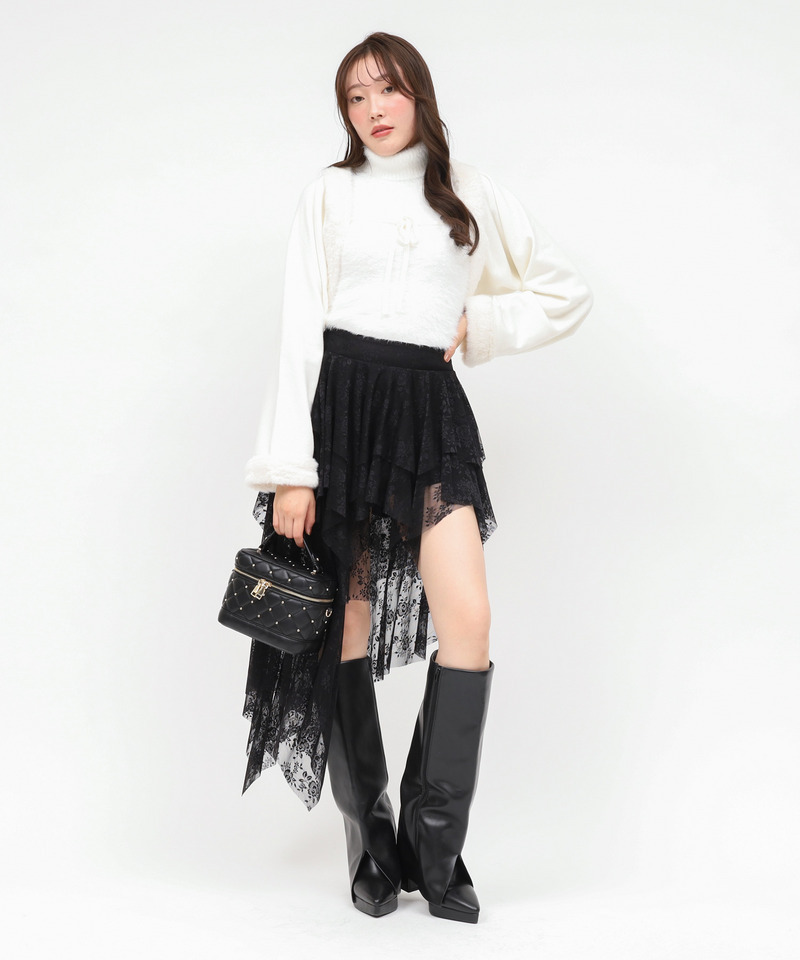 上品なフラワーレースを使用した女性らしさ溢れるイレヘムスカート。
