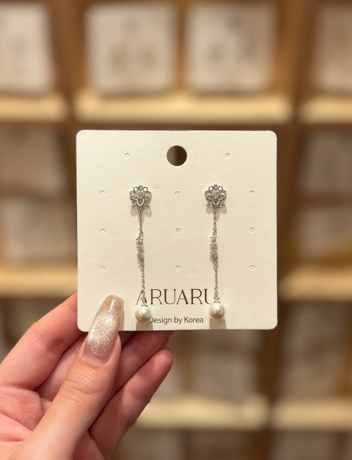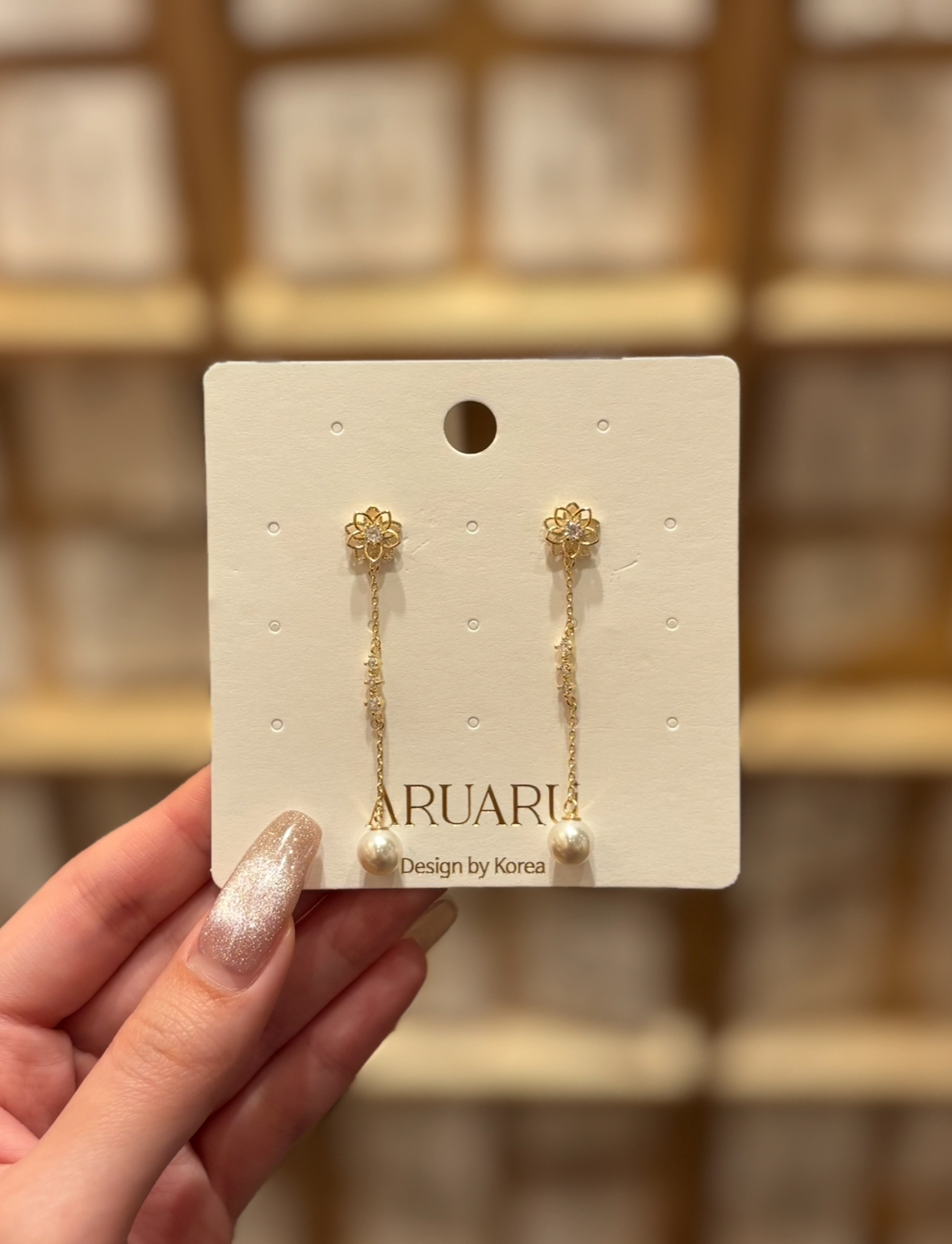 小さめのお花モチーフから、細いチェーンとパールが上品に揺れるデザイン✨