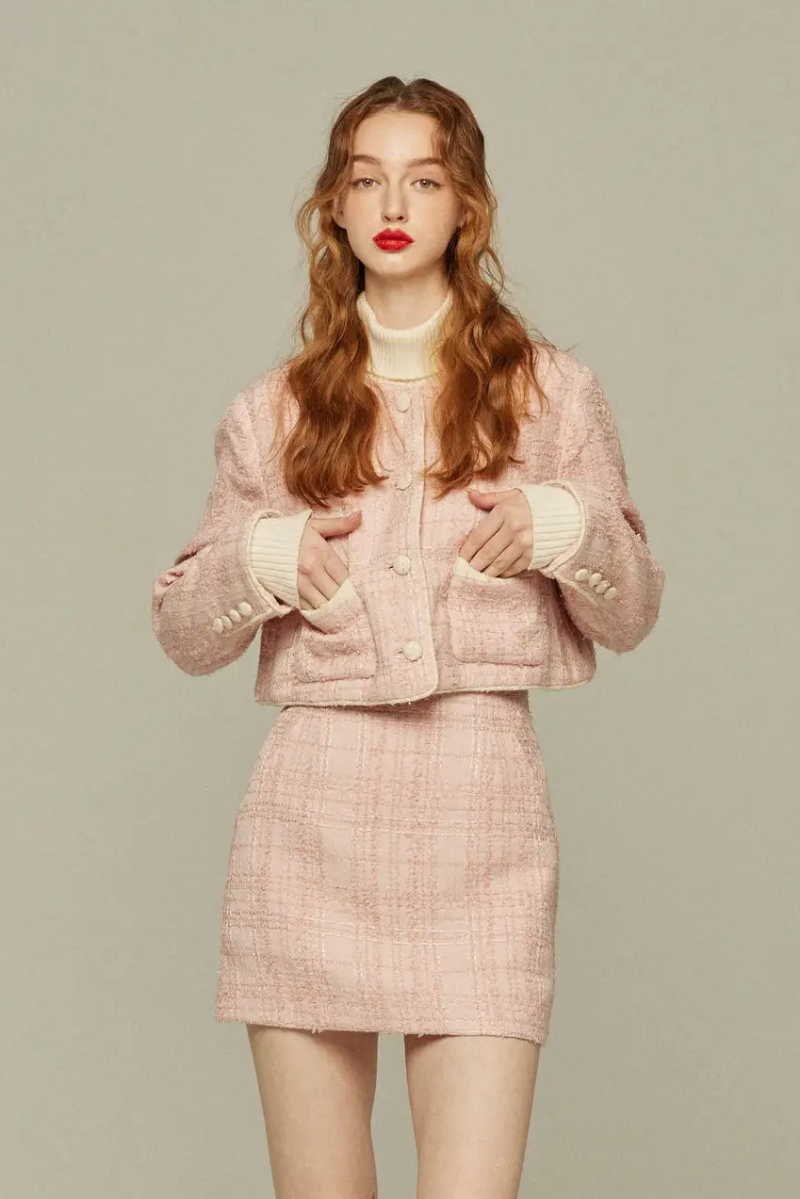 ラメ素材入りのツイード生地がかわいいセットアップです✨