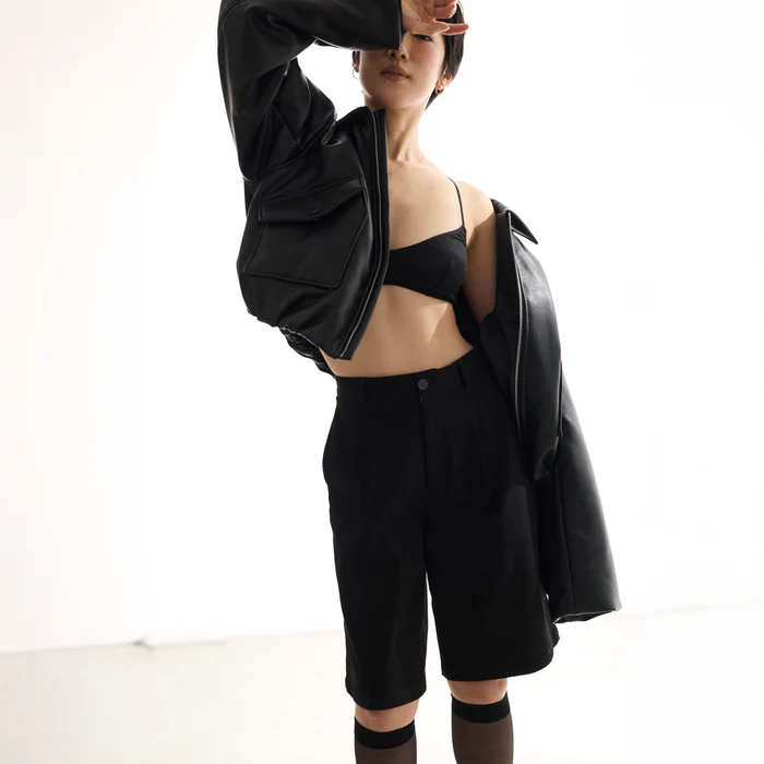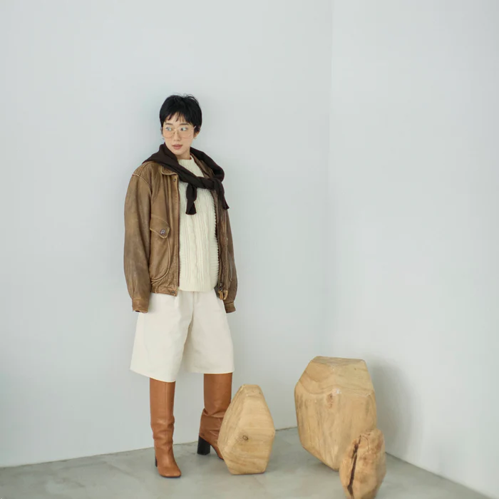 同時発売のPRコラボシリーズ、〈collab Light Sweatlike V-neck Knit〉との合わせもお楽しみいただけます。ロングブーツやソックスとのコーディネートが◎。