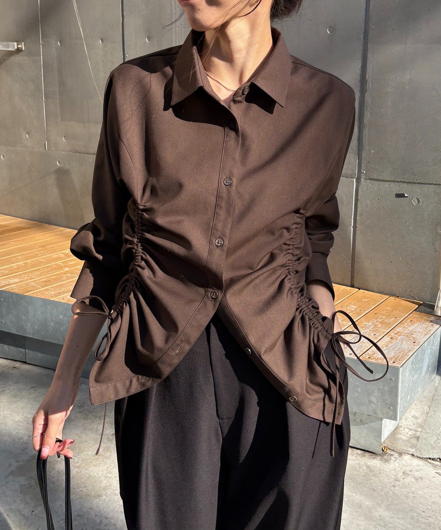 裾のボタンを開けてドロストを絞ると裾が開き脚長効果◎