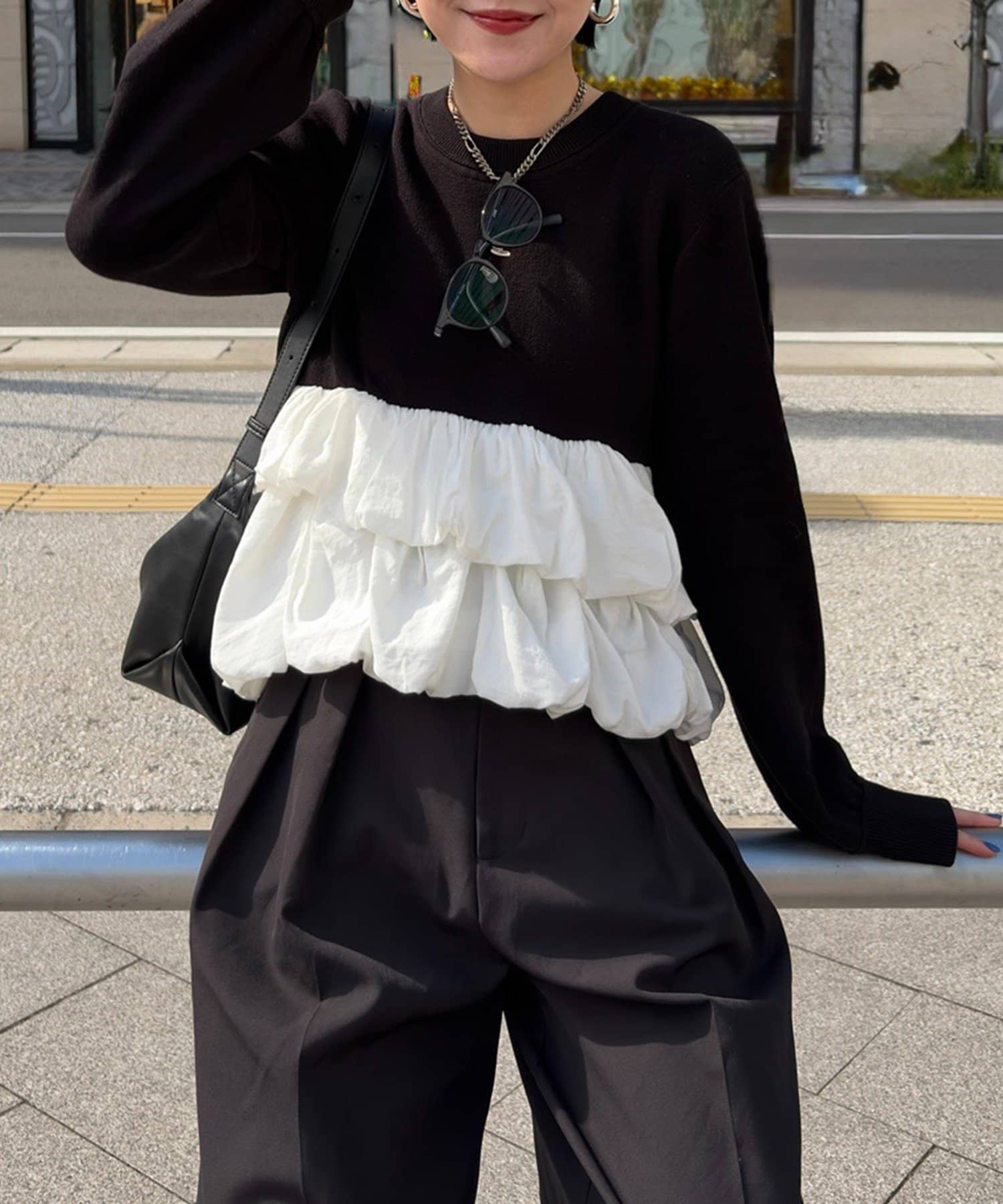 さりげないアシンメトリーのデザインが大人見えしてくれます^ ^
