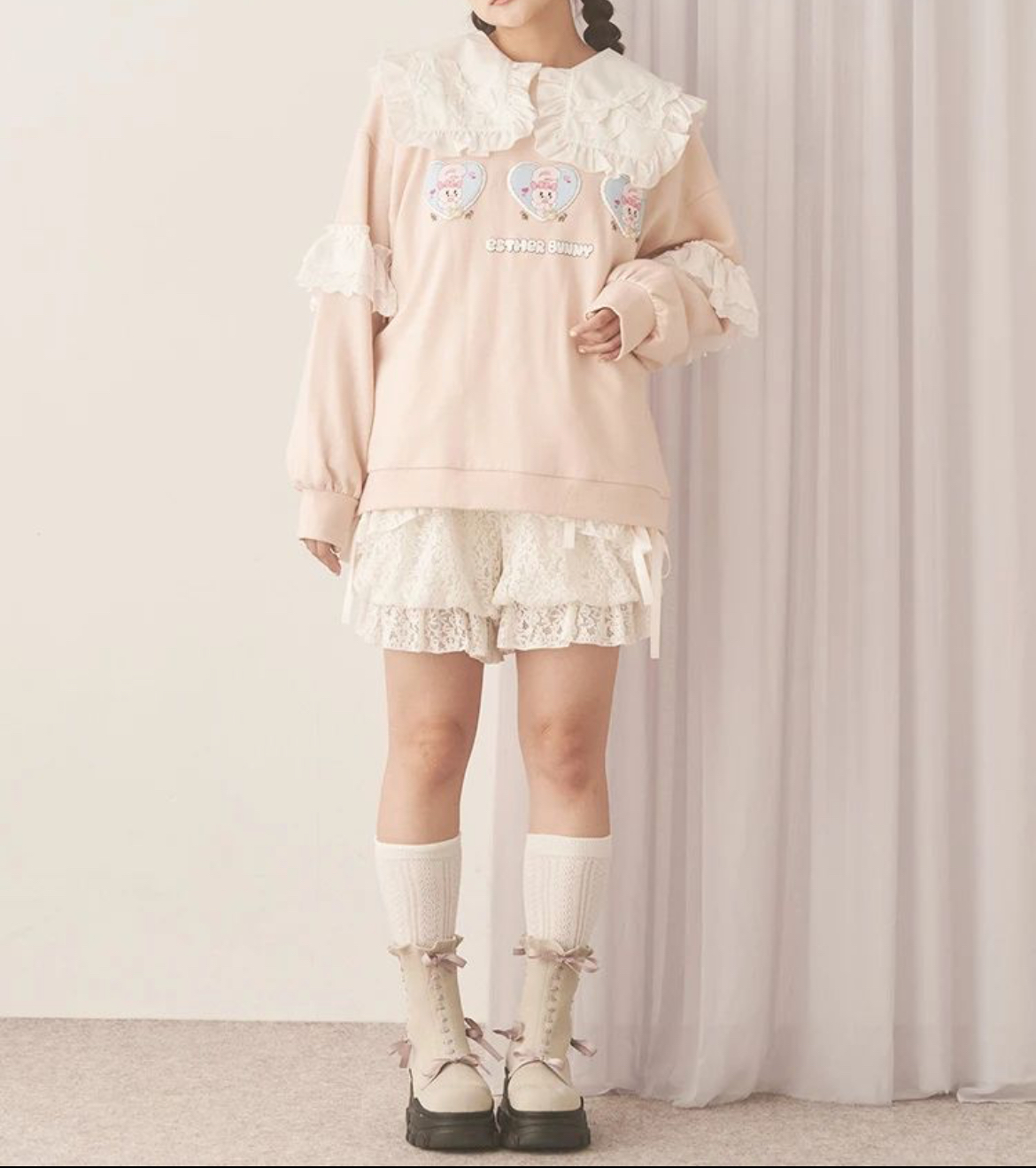 袖にたっぷりついたレースでスイーツのように甘いデザインに仕上げています。