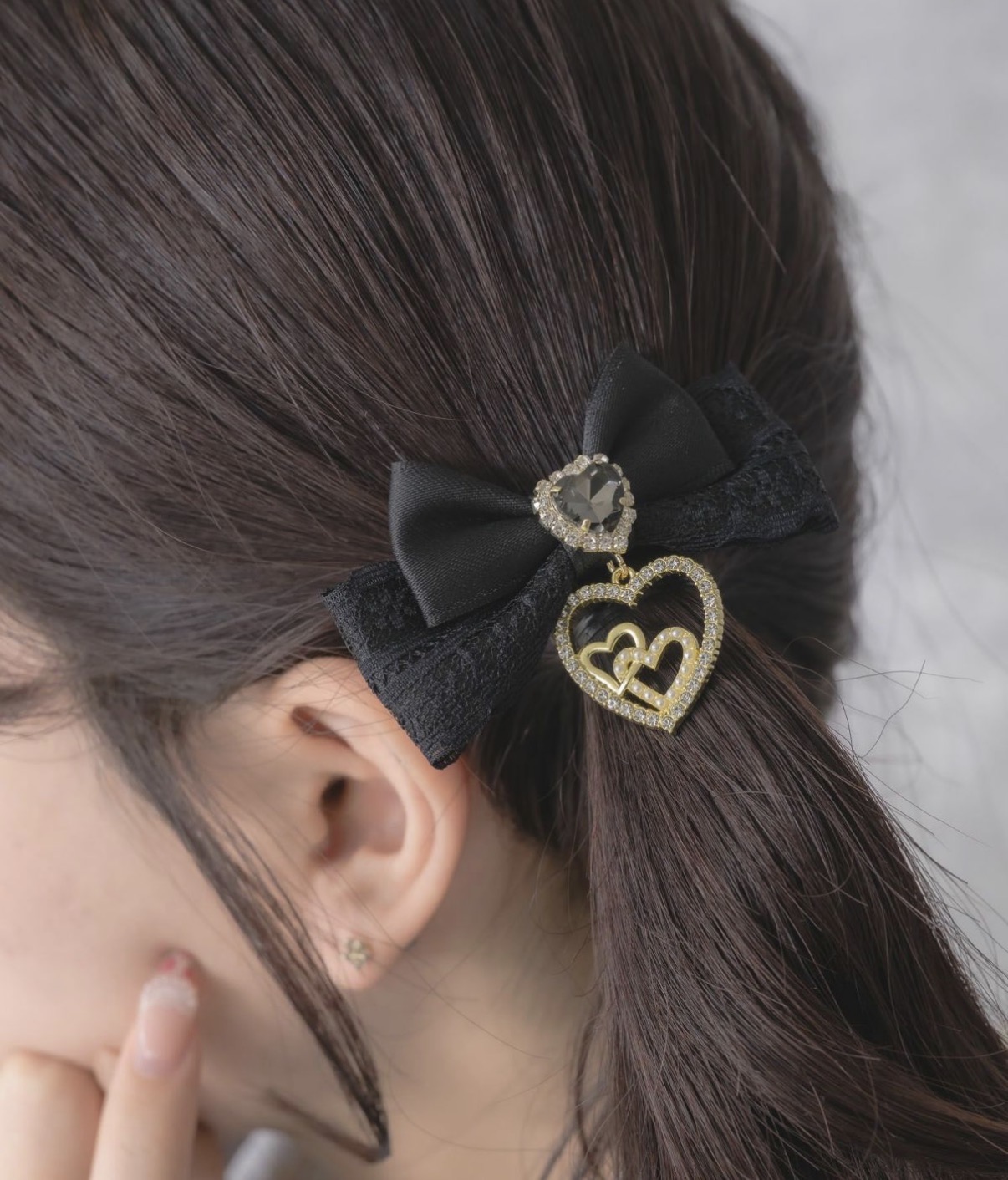 ハートフレームを重ねたトリプルハートデザインと、レースの配色でフェミニンさをプラス♡使いやすいサイジングでヘアアレンジのアクセントにもぴったりです。カラーバリエーションも豊富で、お洋服に合わせて選ぶのも◎