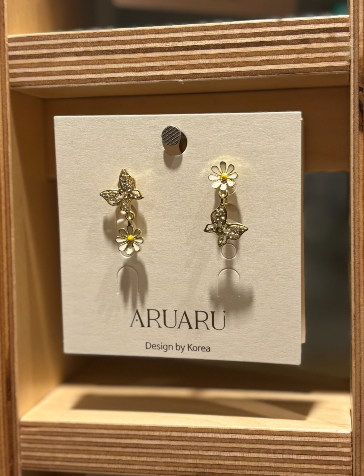 お花と蝶が組み合わさった華やかなイヤリング🌼💛