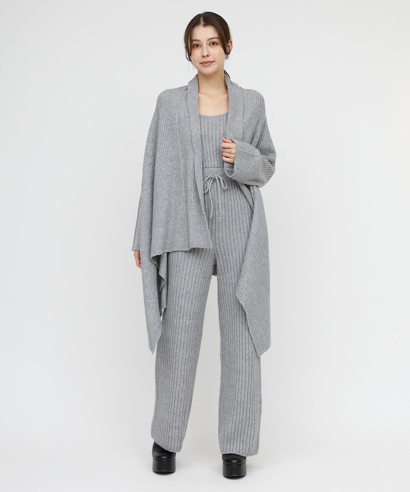 用尺をたっぷりと取り表情豊かに演出したイレヘムカーディガン×リブニットオールインワンのセットアイテム。