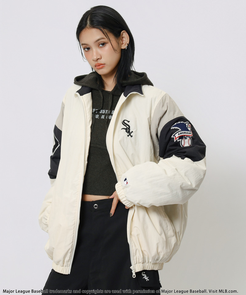 マットでスポーティな質感が魅力のナイロン生地を使用し、中綿入りで暖かく、適度なボリュームでストリート感のある印象に。