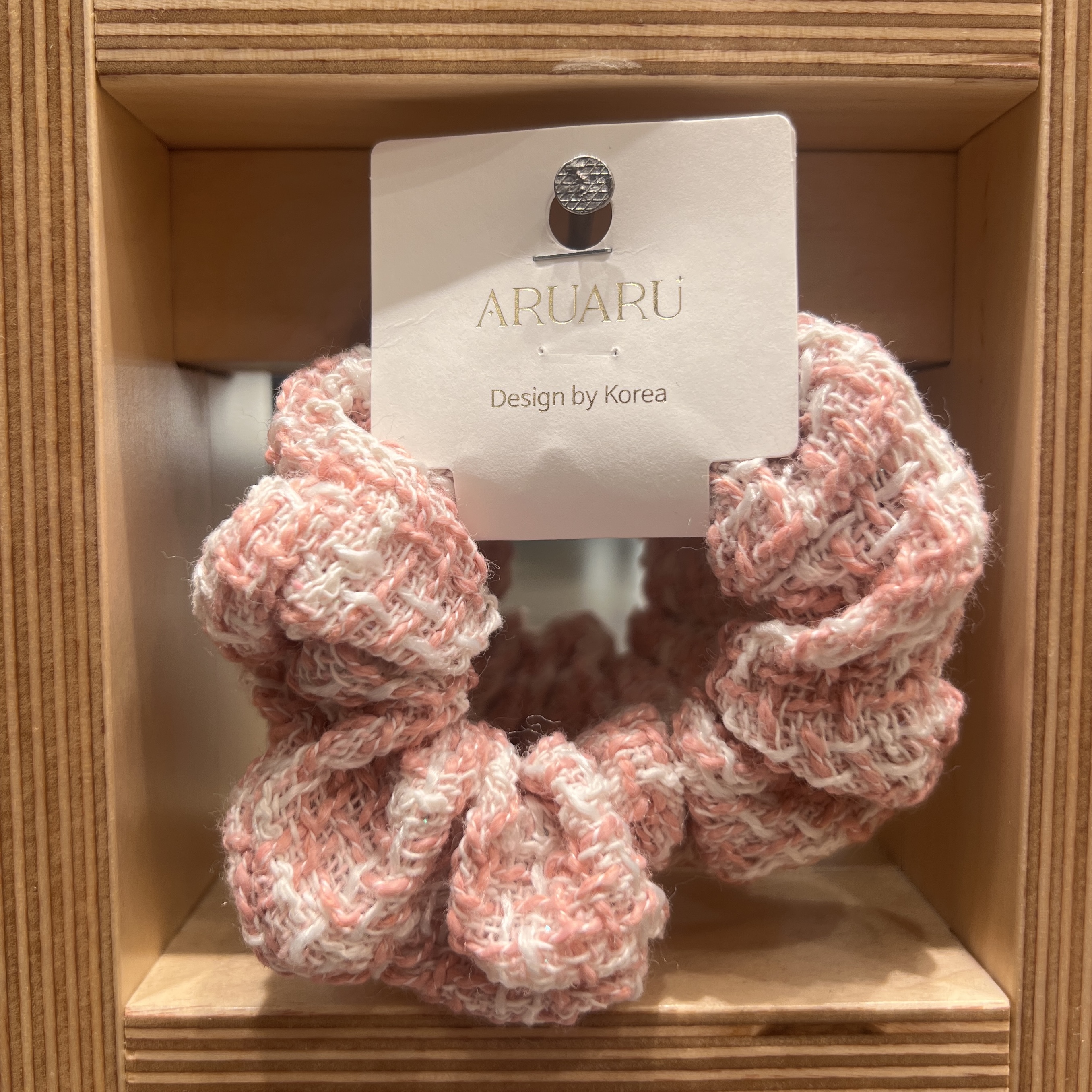 ピンクと白色の糸を使用した毛糸シュシュです!