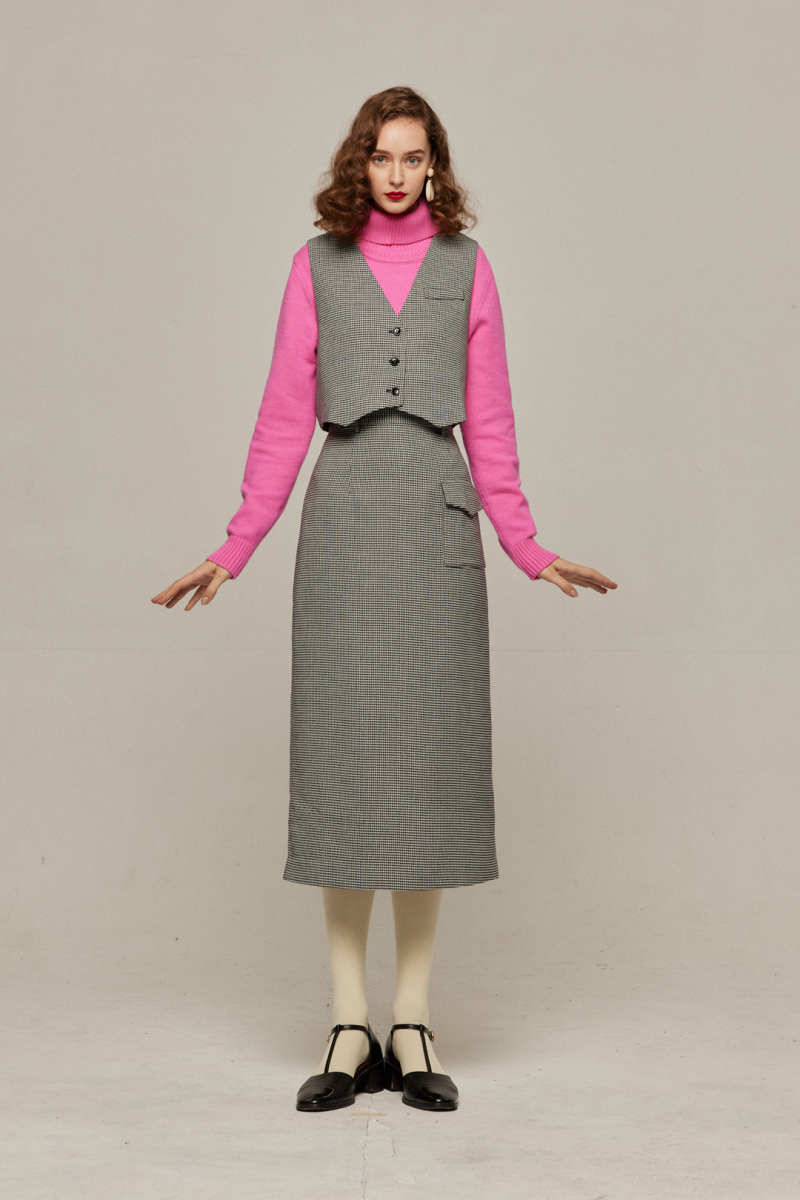襟と身頃の境界が低いデザインで、首が長く見えて小顔効果も◎