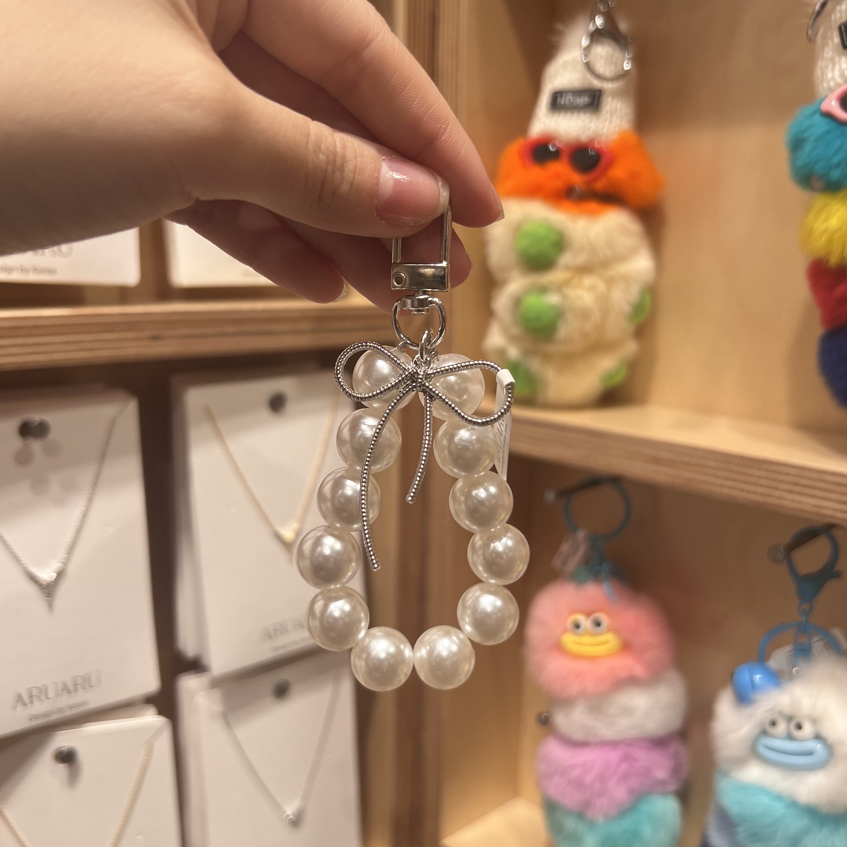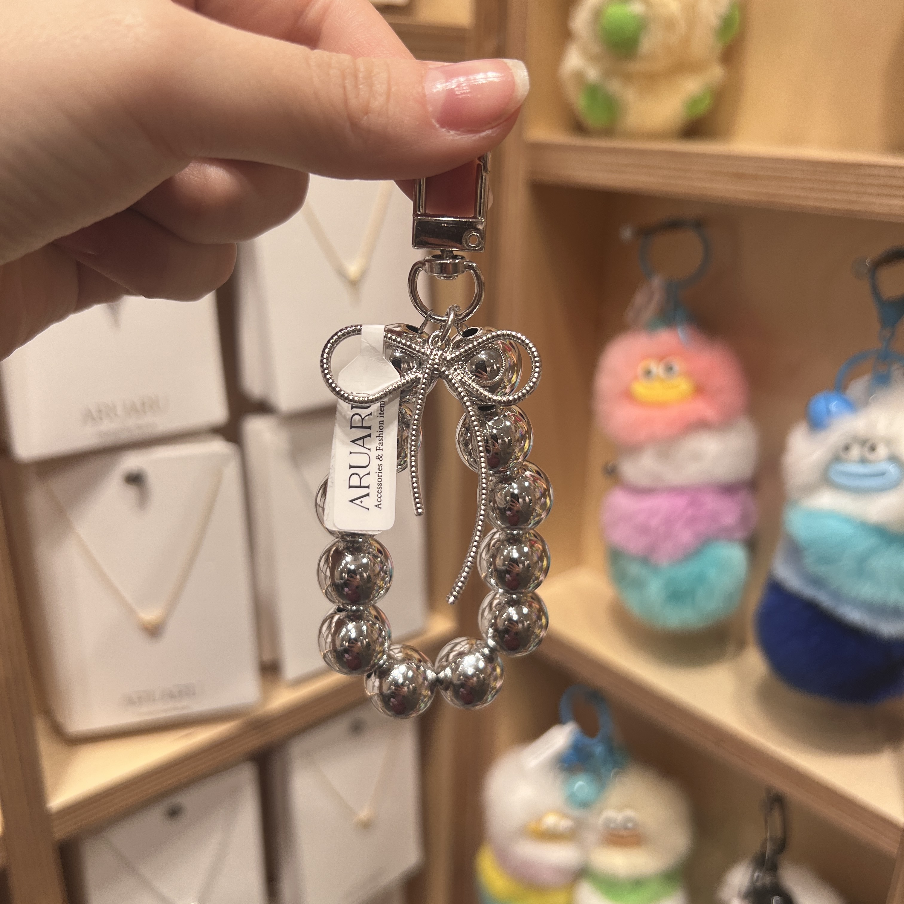 パールとシルバーのリボンの組み合わせがかわいいホンコードです❤️