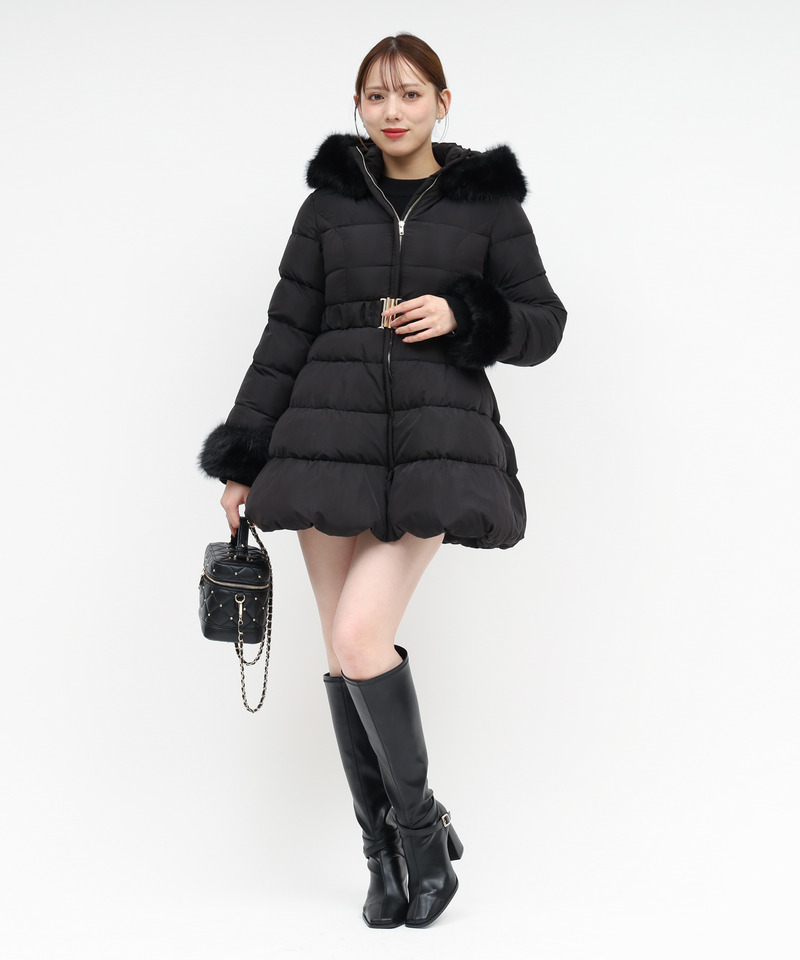 フードと袖口にあしらわれたボリュームたっぷりの柔らかなファーが女性らしさを演出し、華やかさをプラスしてくれます。