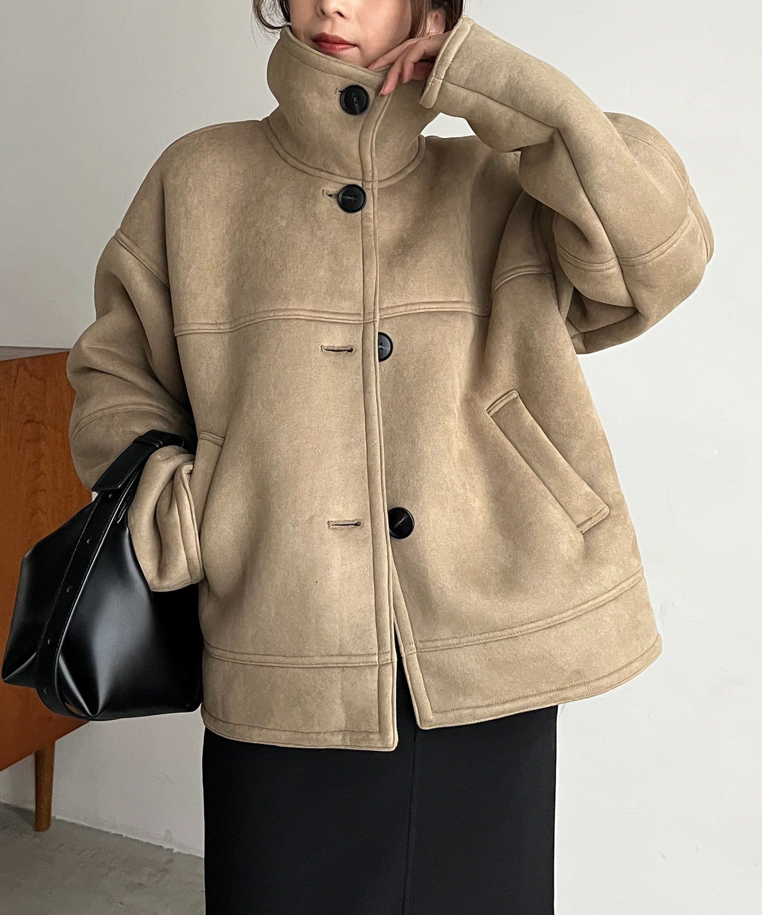 スエード素材で中がボアになっているので暖かくニットとの相性もばっちりです✨