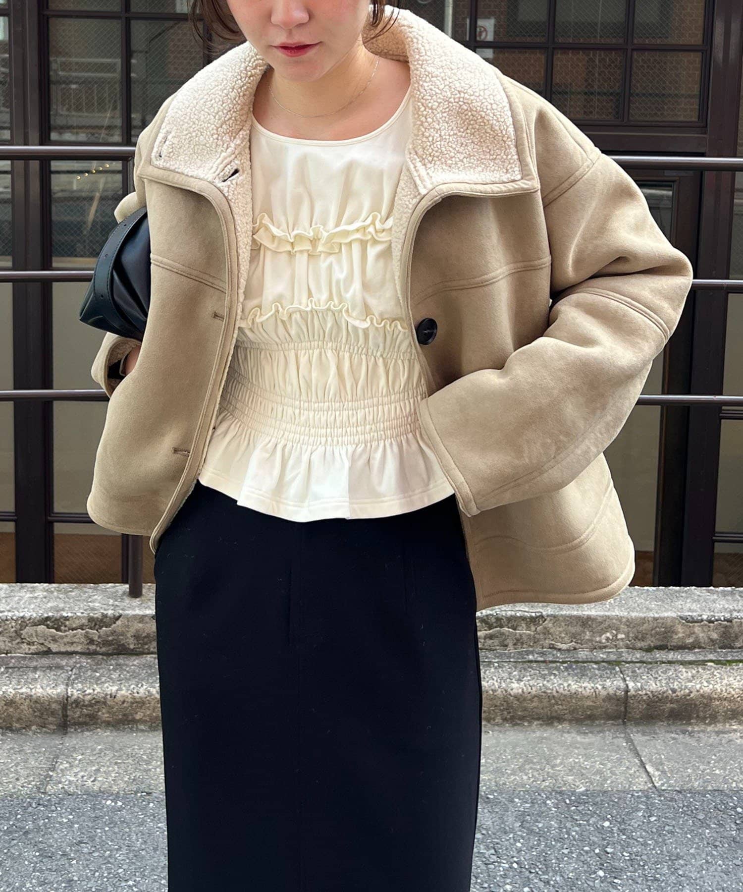 ブラウス見えする着映えカットソー 華やかなフリル切替が目を引くベアデザイン 柔らかい裏起毛素材で着心地抜群✨