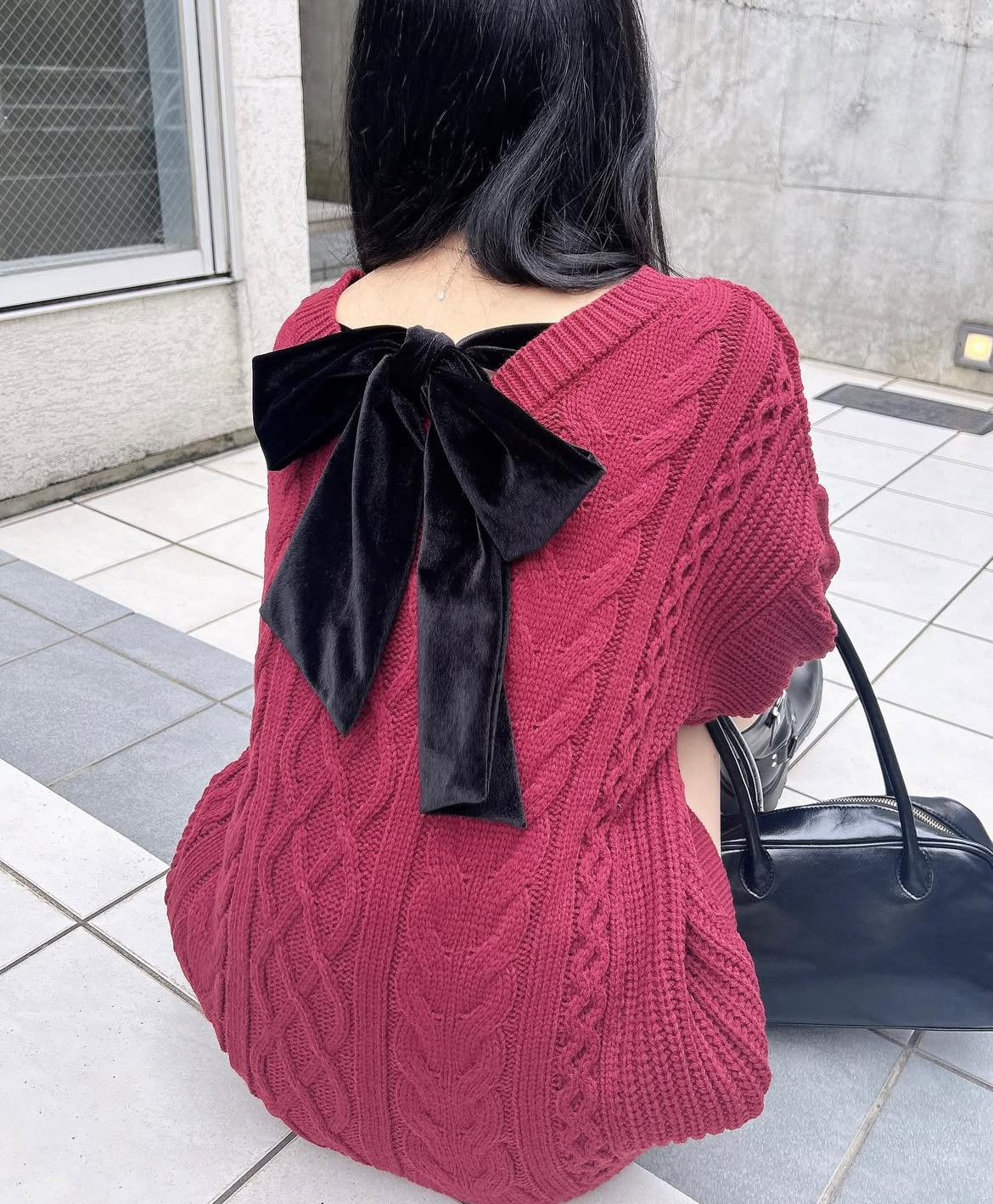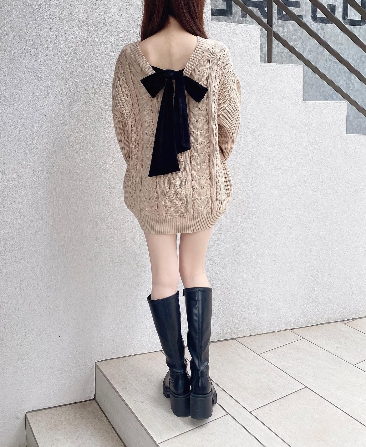 1254-900328 Backベロアリボンケーブルチェニックニット