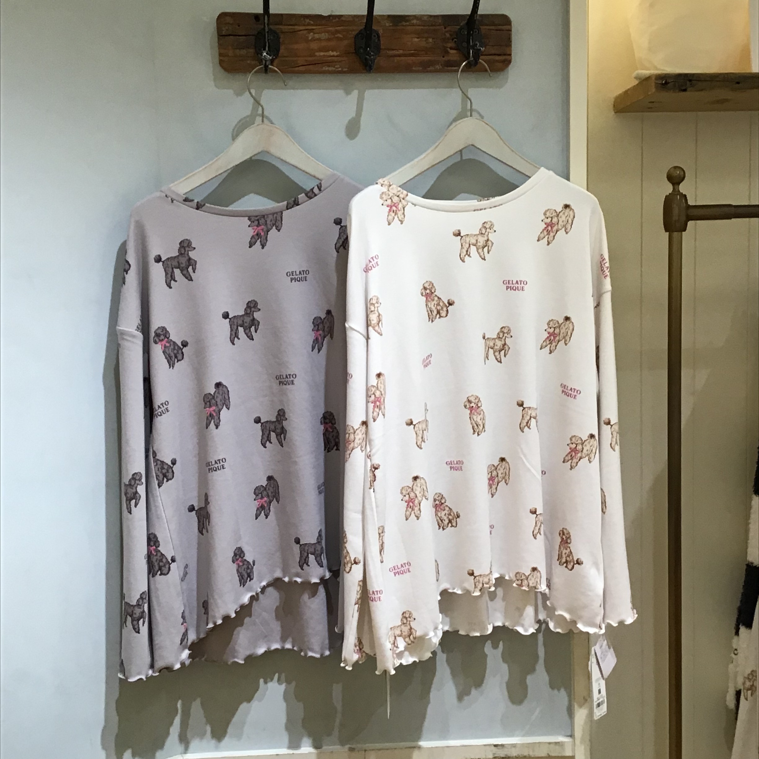リボンを付けたプードル柄がかわいいロンTとプードル柄がかわいいロングパンツを紹介いたします🕴⭐︎