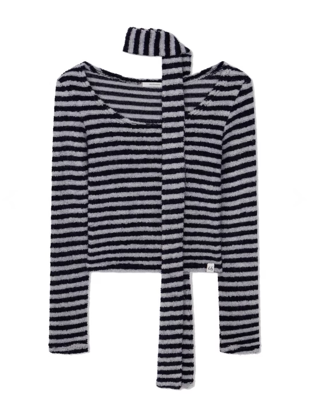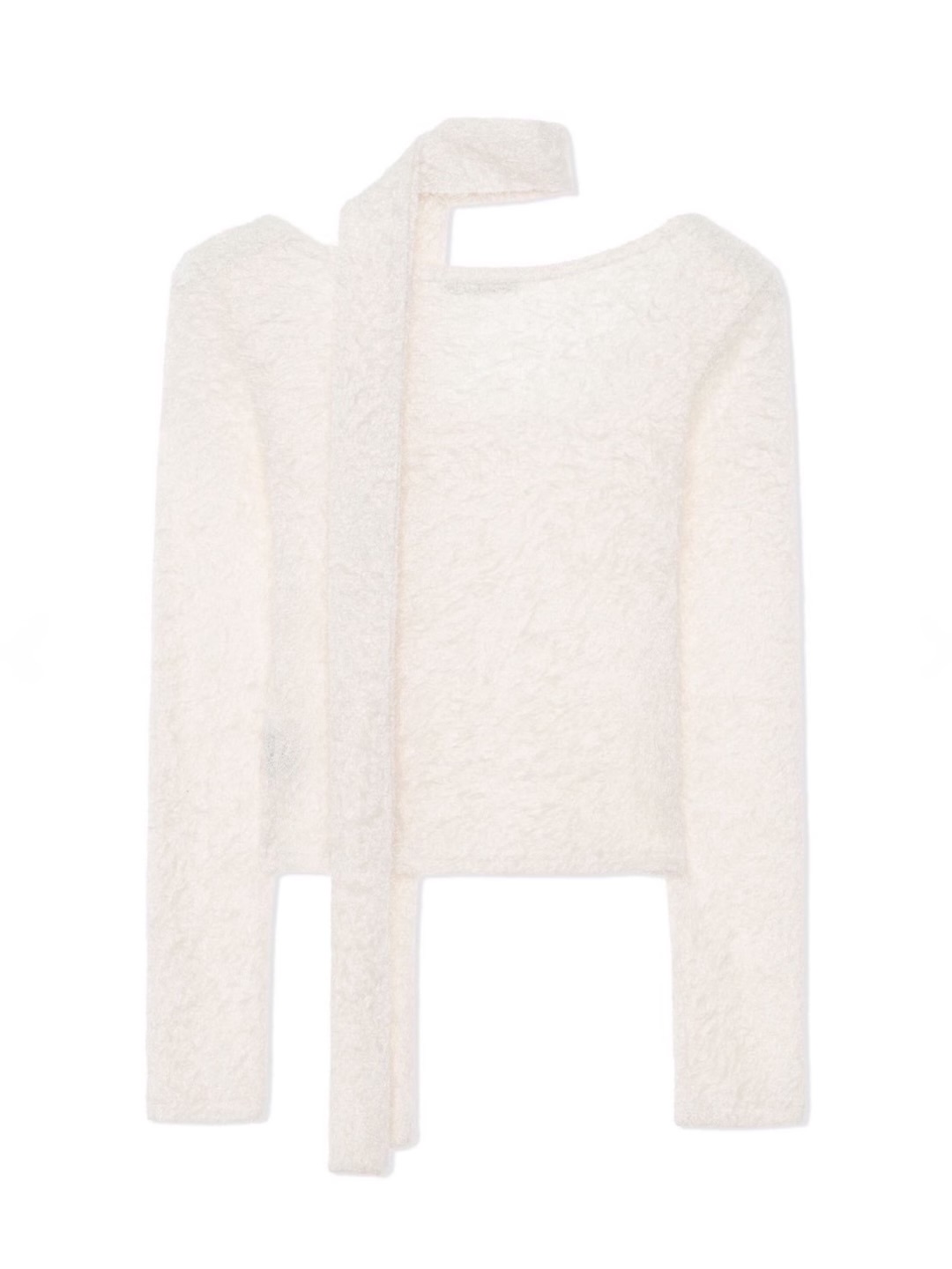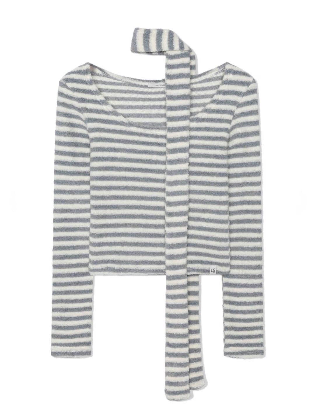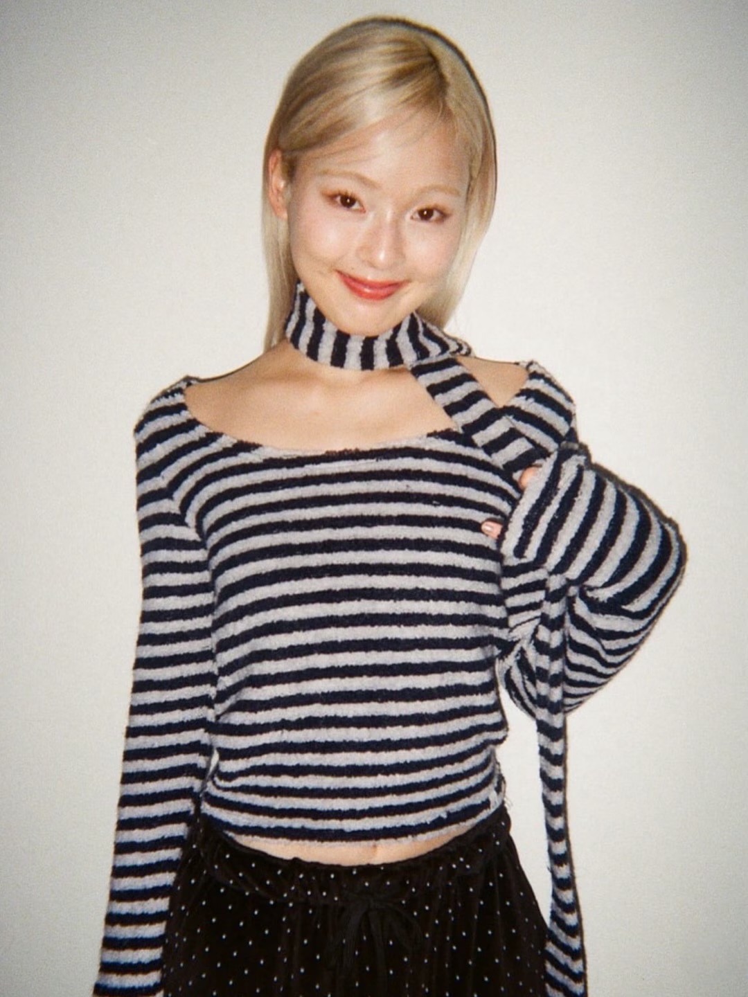 広めのUネックになっており、鎖骨を見せてスタイルアップができるアイテムです