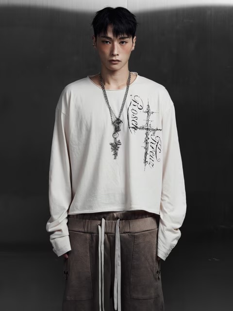 左胸のところに大きくクロスがデザインされているのが特徴のシンプルなロンTです