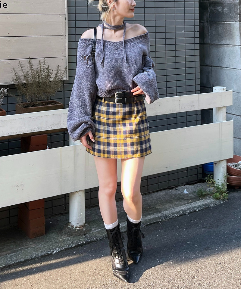 今季トレンドのチェック生地を使用したマイクロミニスカート。