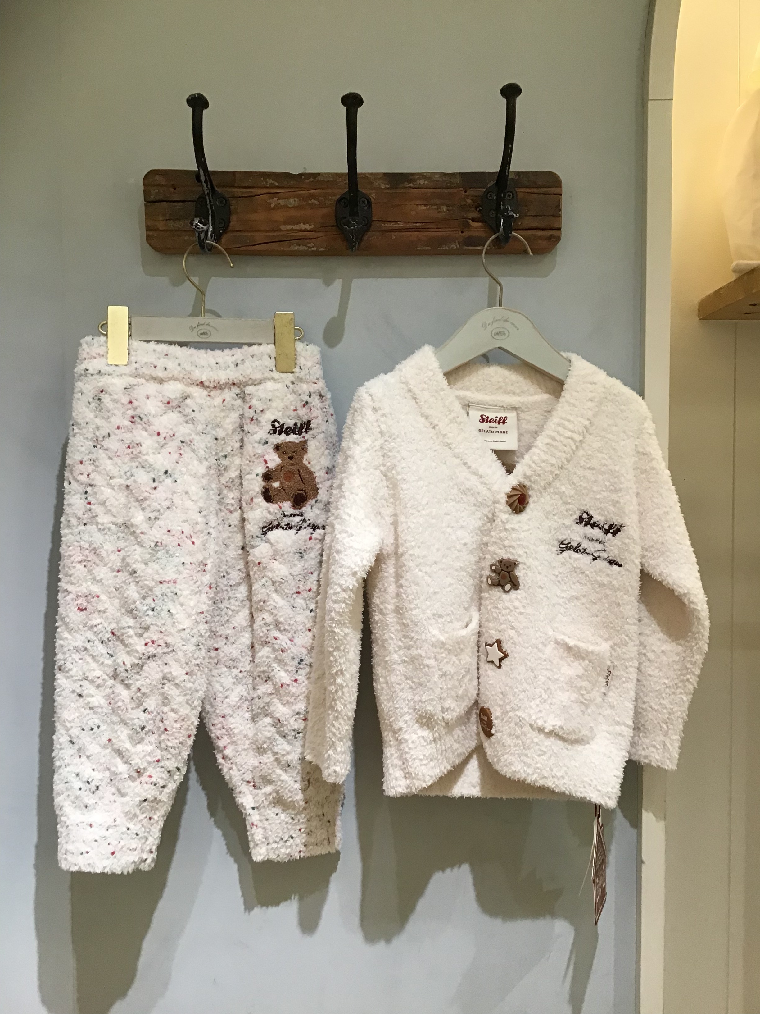 Steiff・『55PB』を描いたお菓子のボタン付きBABYポンチョとカーディガン&ロングパンツを紹介いたします🕴⭐︎