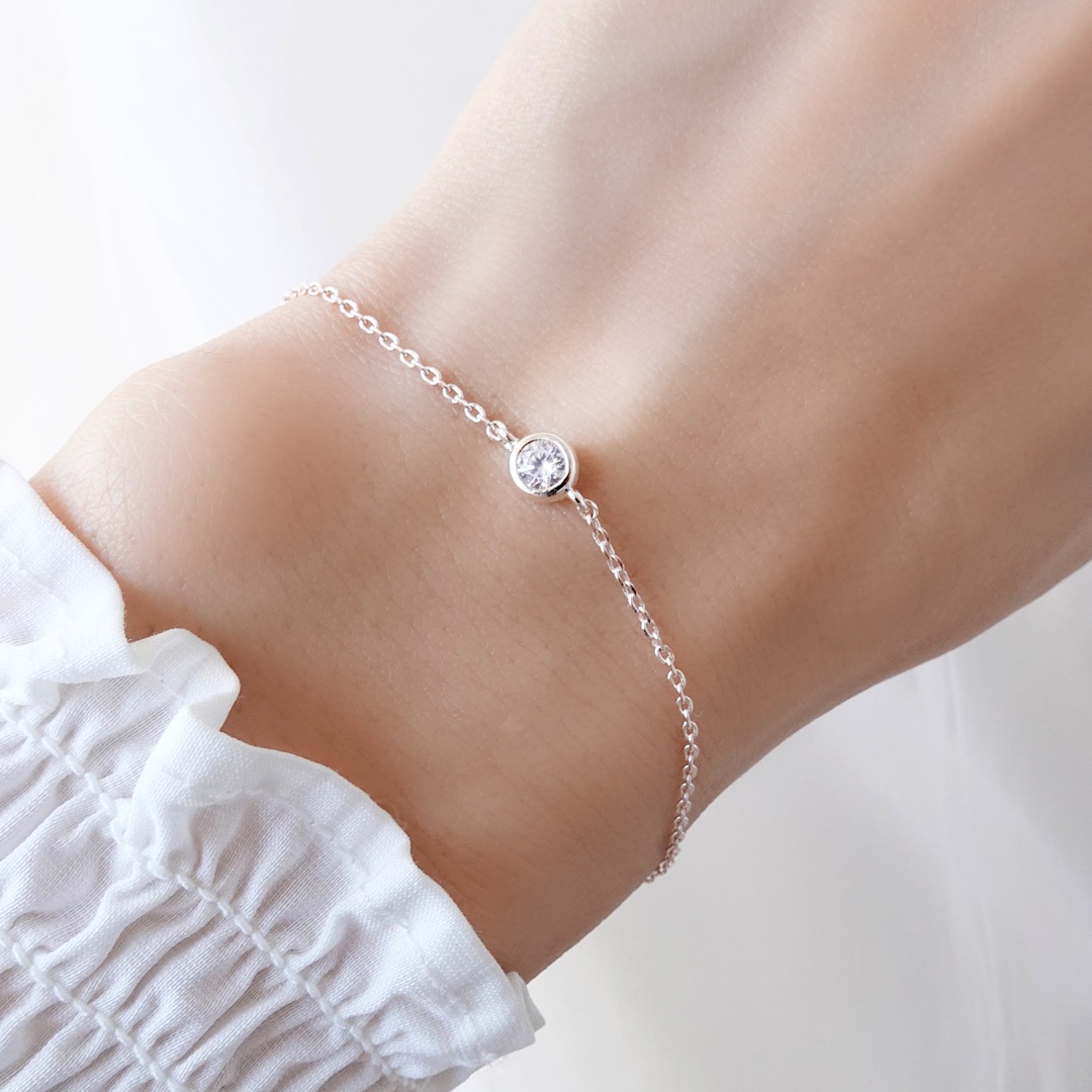 シンプルながら存在感ある輝きを放つ一粒ビジューブレスレット💎