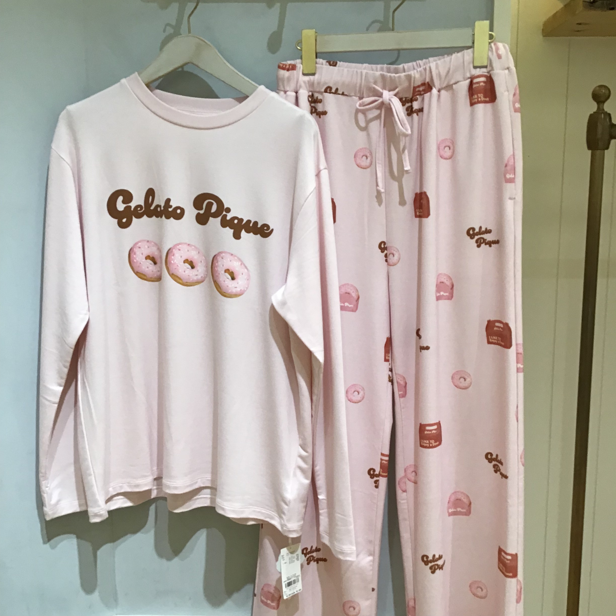 フロントには立体感のあるロゴと3つのドーナツをあしらい、遊び心を効かせました。シルエットはデイリーに着やすいベーシックなデザインで、カラーはクリームとピンクの2色展開。色ごとに異なるフレーバーのドーナツを描いています。同シリーズのロングパンツや、ドーナツジャガードシリーズと合わせれば、大人かわいいリラックススタイルを楽しめます。