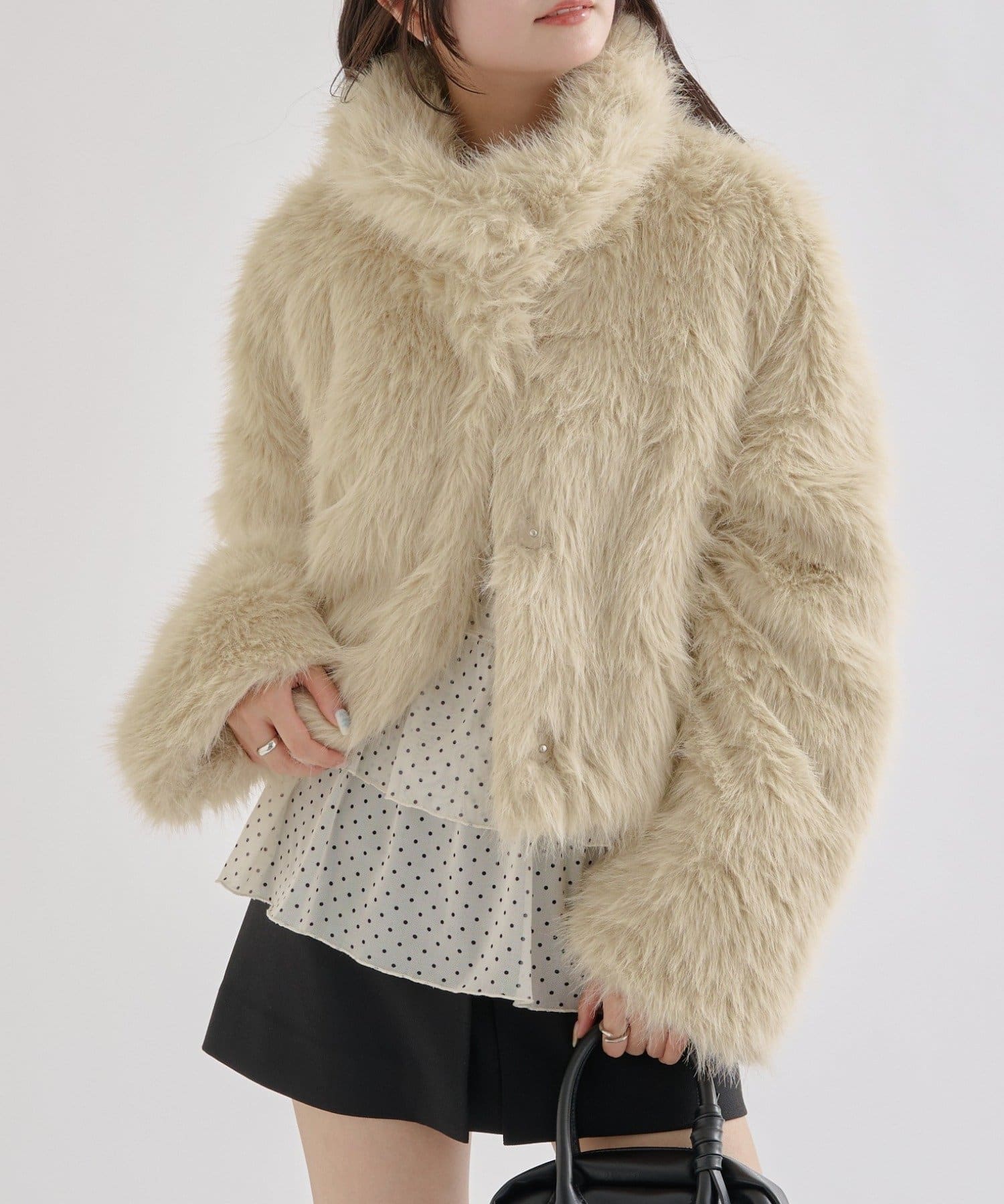 ふわふわで触り心地の良いファーが華やかで冬のコーディネートの主役になるアイテム。1着羽織るだけでシーズンムードが高まります◎