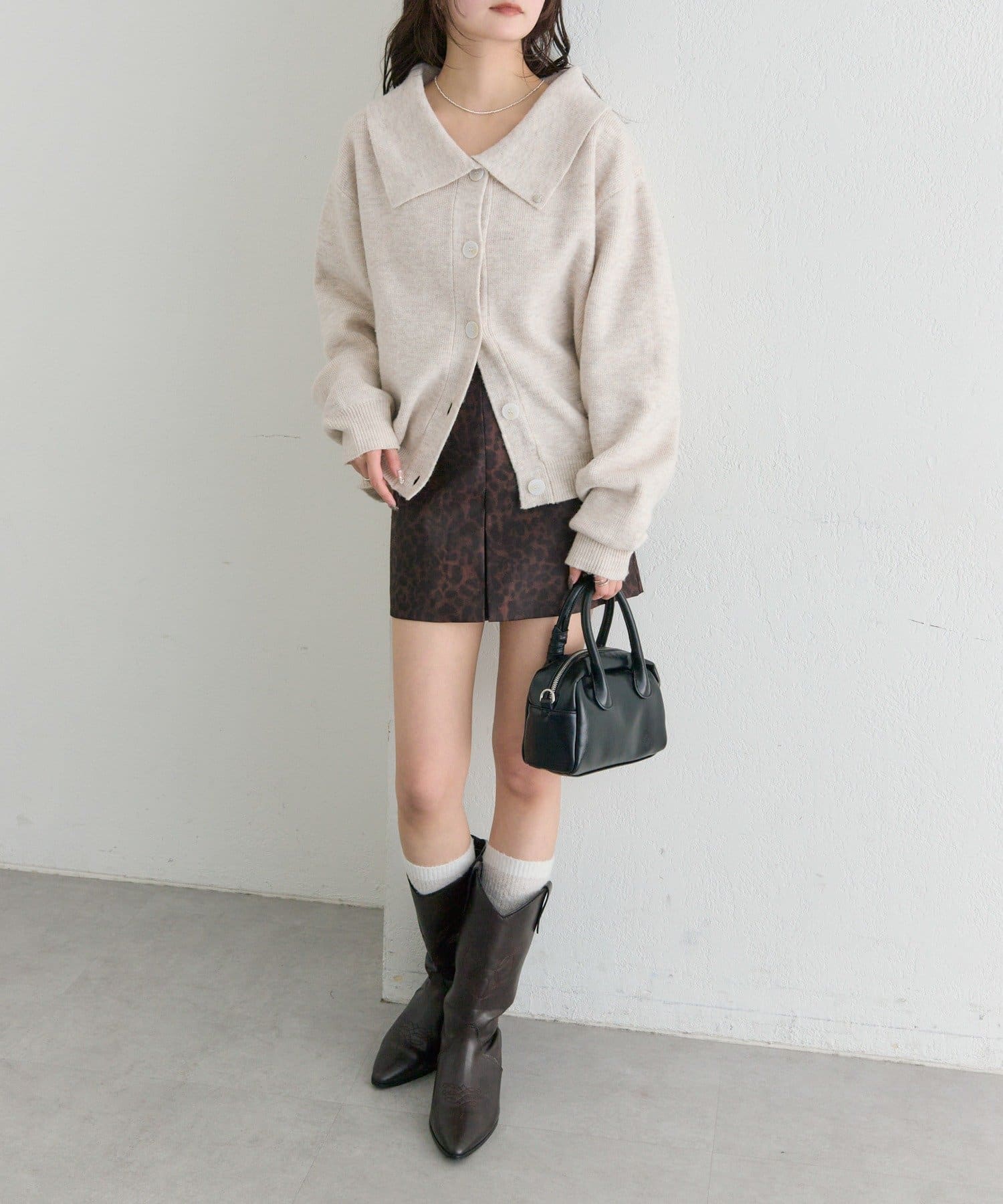 アウターの下に着ても着ぶくれしにくいニットカーディガンになっています。
