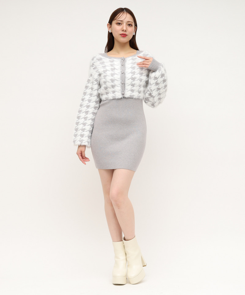 2way千鳥シャギーアンサンブルニットミニワンピース