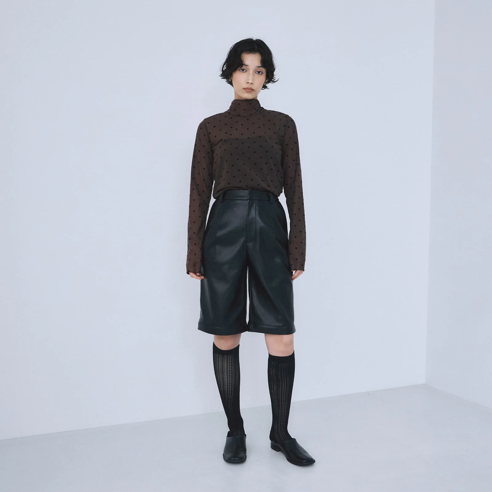 「ブラックレザー」は、やや光沢のある滑らかな表面感が特徴のエコレザー。ストレッチ入りで動きやすく、本革より軽い穿き心地が魅力です。柔らかくしなやかなタッチに、裏起毛仕様で肌当たりもやさしく快適。防風性・保温性にも優れ、秋冬シーズンにぴったりです。