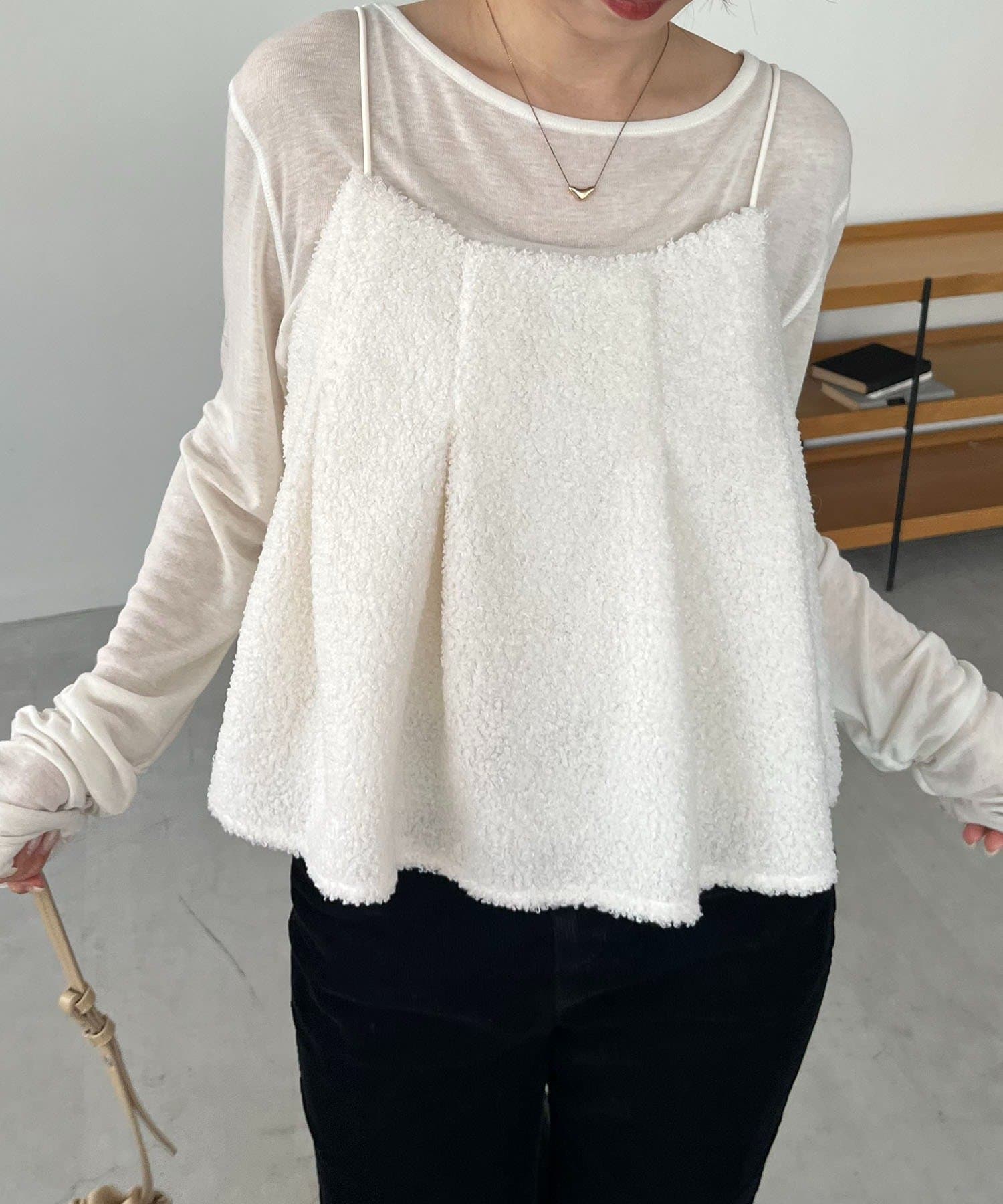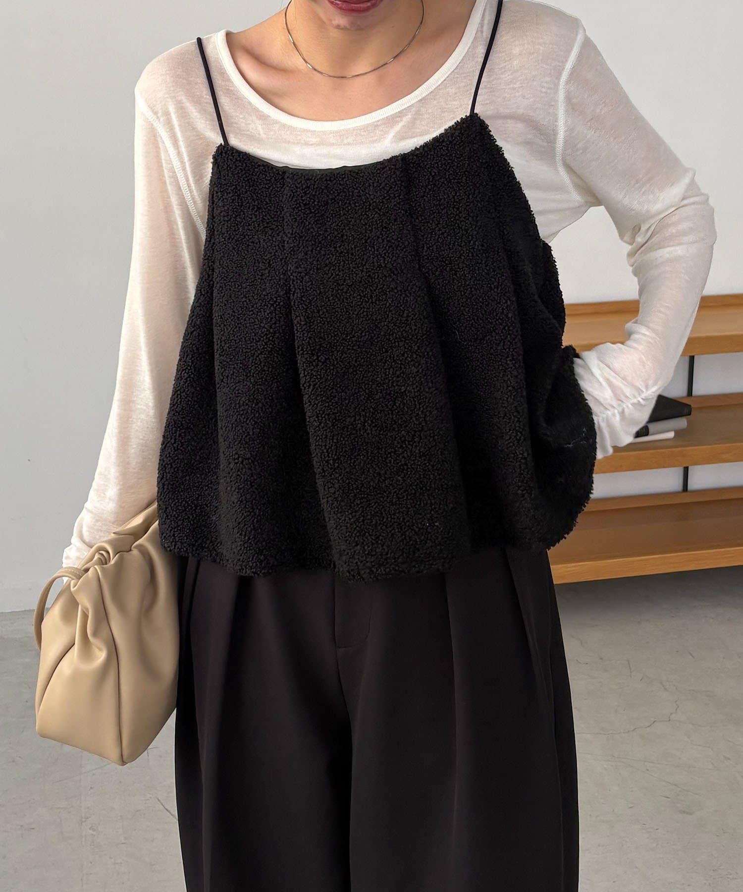 ボア素材で冬らしく暖かい触り心地のフレアキャミ🧶