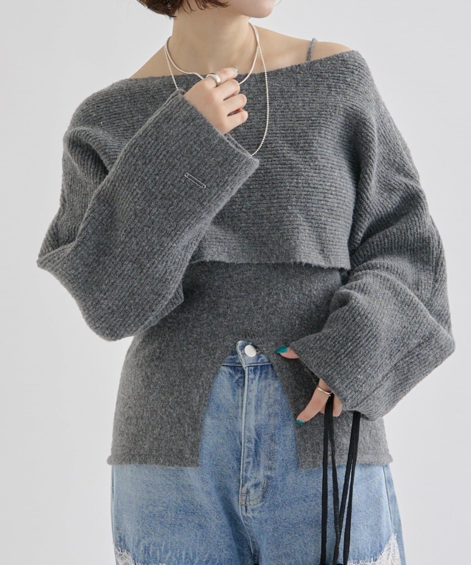 キャミソールとニットがセットになったこなれ感あるトップス。