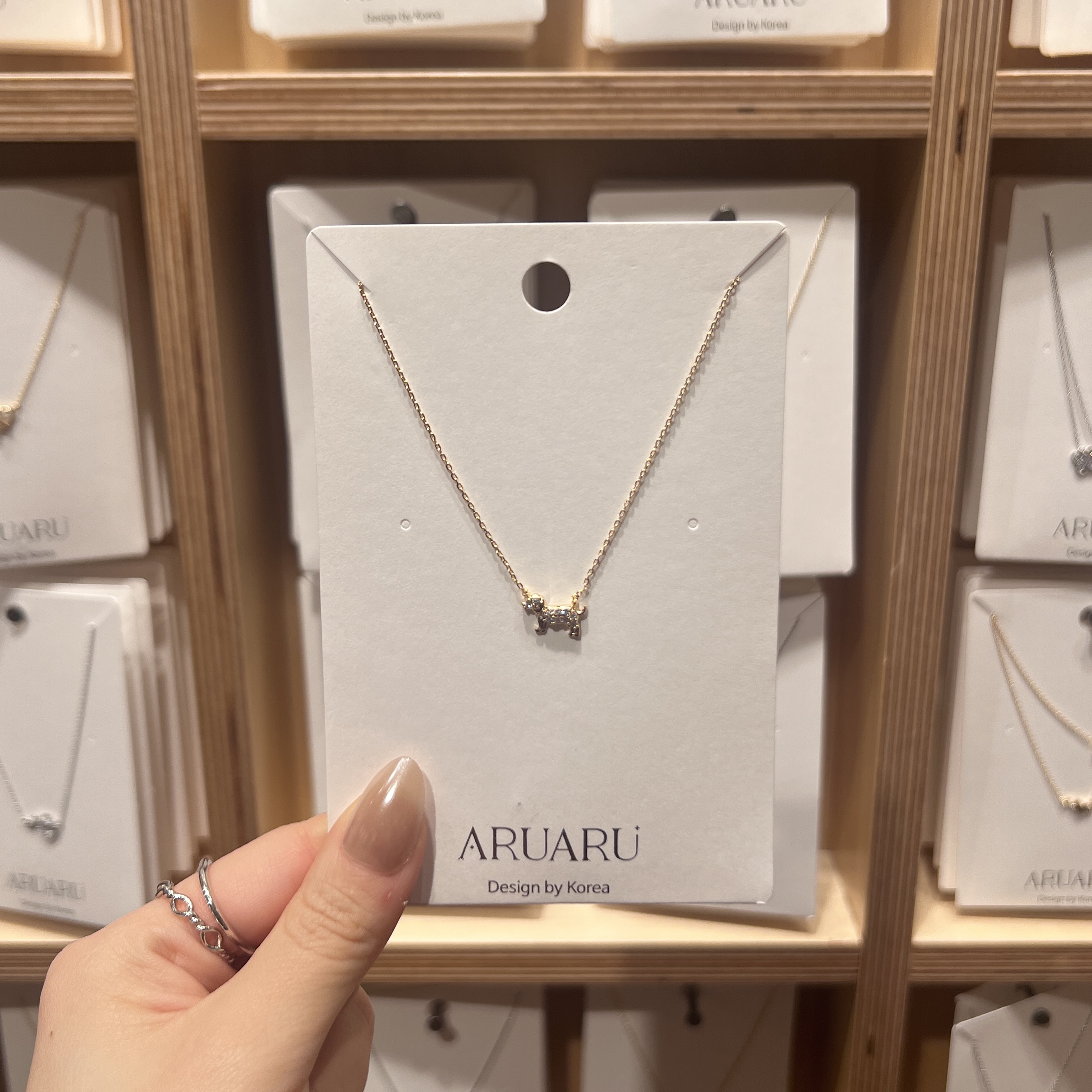 繊細なチェーンに、小ぶりな犬のモチーフをあしらったネックレスです🐕