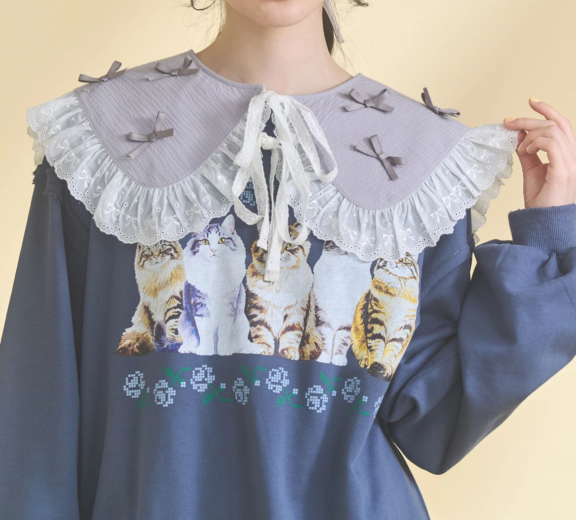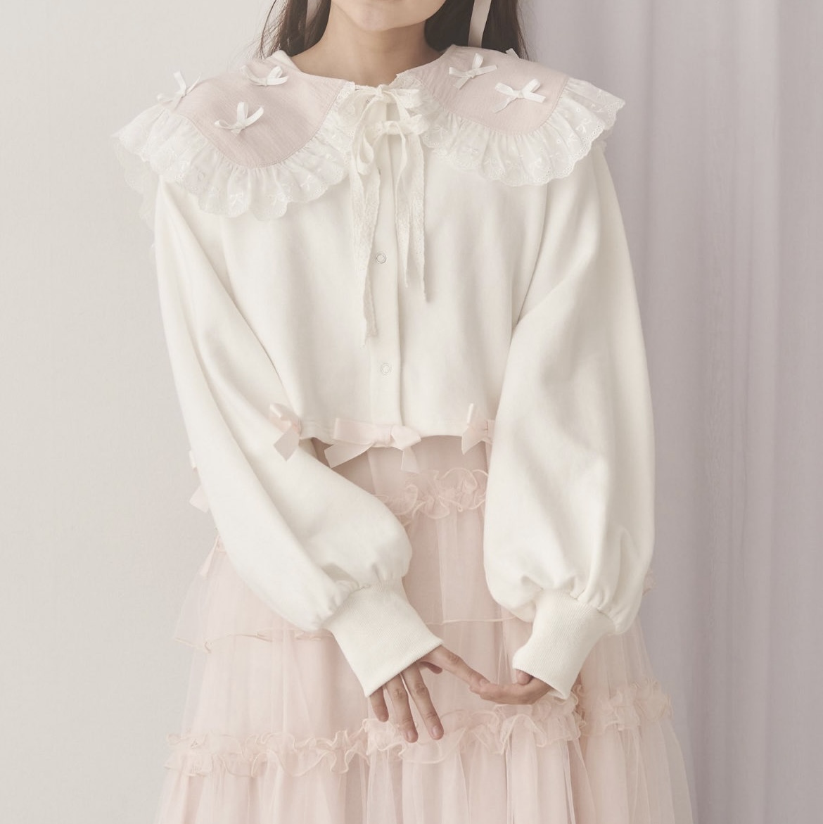 たっぷりのレースを挟み込んで、ちょこんとしたリボンをちりばめたつけ襟〇