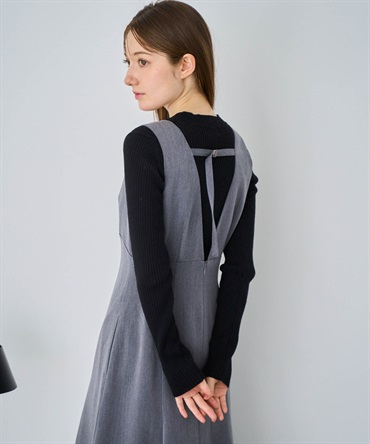 胸元のハートカット風カッティングが愛らしいジャンパースカート。