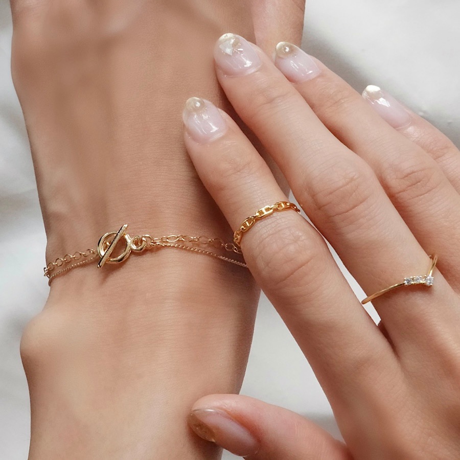 デザインの異なる2本のチェーンで動きがあり、デイリー使いしやすくも上品な仕上がりへ💭