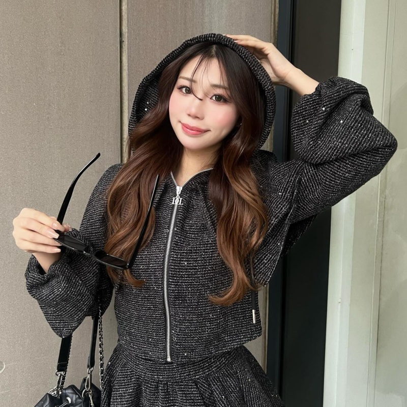 スパンコール入りツイードがきらめく、海外ガール風メリハリシルエットの主役級セットアップ♡✨