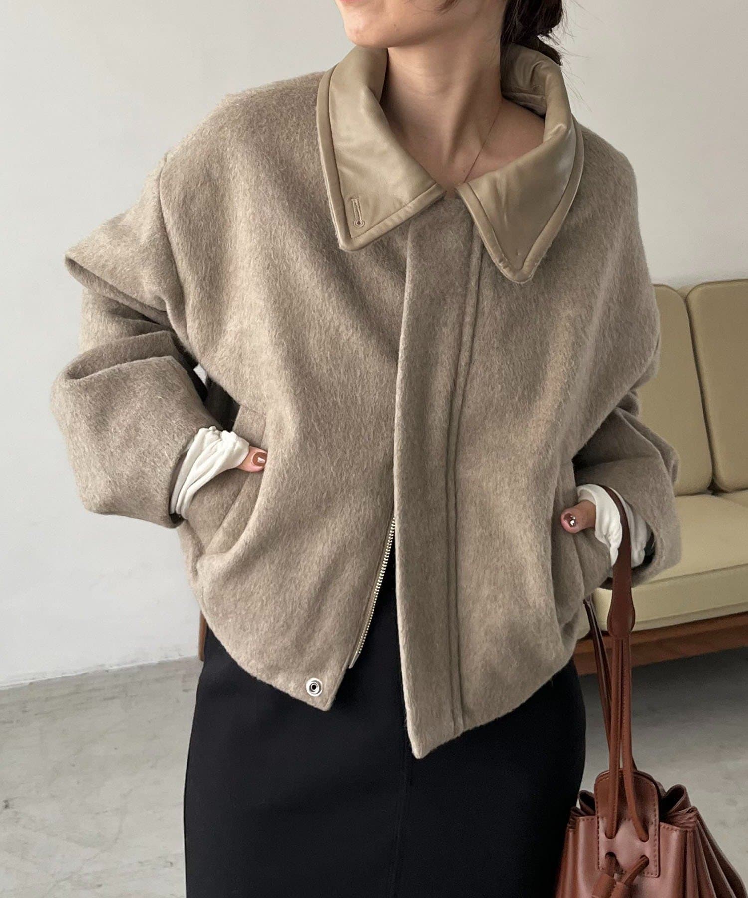 スタンドネックを折り返すと合皮の襟になるのがポイント◎