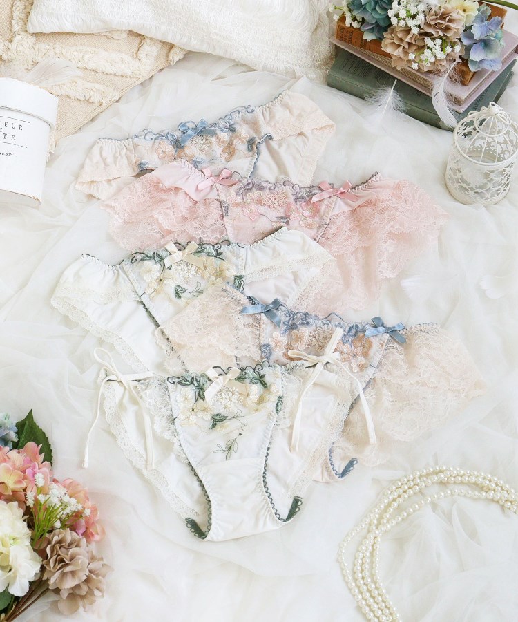 オオデマリのお花をモチーフにした、可憐で華やかなシリーズです。レース一面にあしらったお花の刺繍は、それぞれ異なるステッチでほどこすことで、華やかさの中にも抜け感を演出。刺繍にはさりげなく小花のアップリケを重ねて、より奥行き感のあるデザインに仕上がりました。葉っぱのスカラは同系色の交互カラーで可愛らしさを出しながらも、思わず目を引くインパクトをプラス。キラキラときらめくラメ糸と、リサマリらしいカラーリングをミックスした、女の子の心ときめくコレクションです。