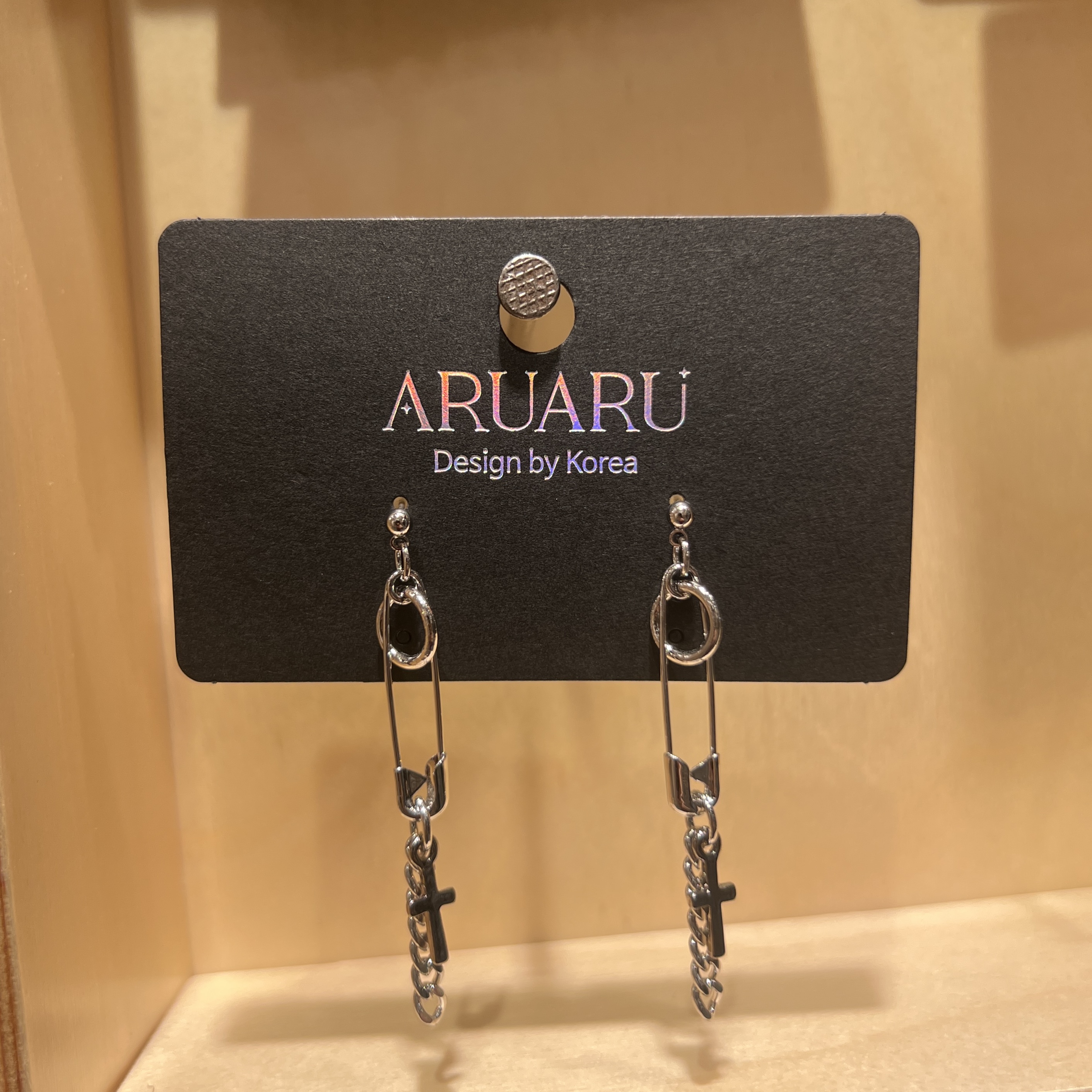 無機質でダークな雰囲気が魅力の、安全ピンモチーフを使用したチェーンピアス⛓️